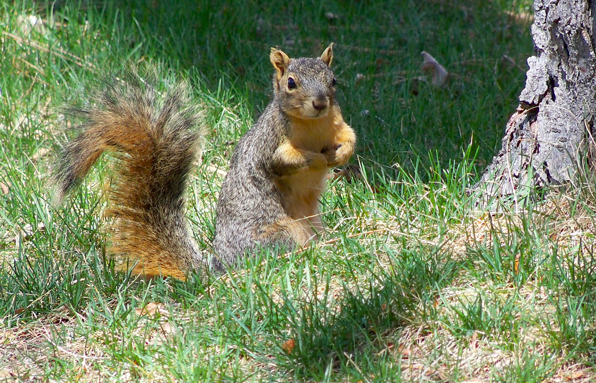 I know that I shot three bursts of 5 within a few seconds, while (s)he darted back and forth before finally going up the tree. There was that one good shot and two which were usable enough had I not gotten that one.@OldMacs4Me Squirrels are due to their frantic nature notoriously difficult to properly photograph. A great shot which makes me wonder how many unsuccessful pictures we haven't seen.