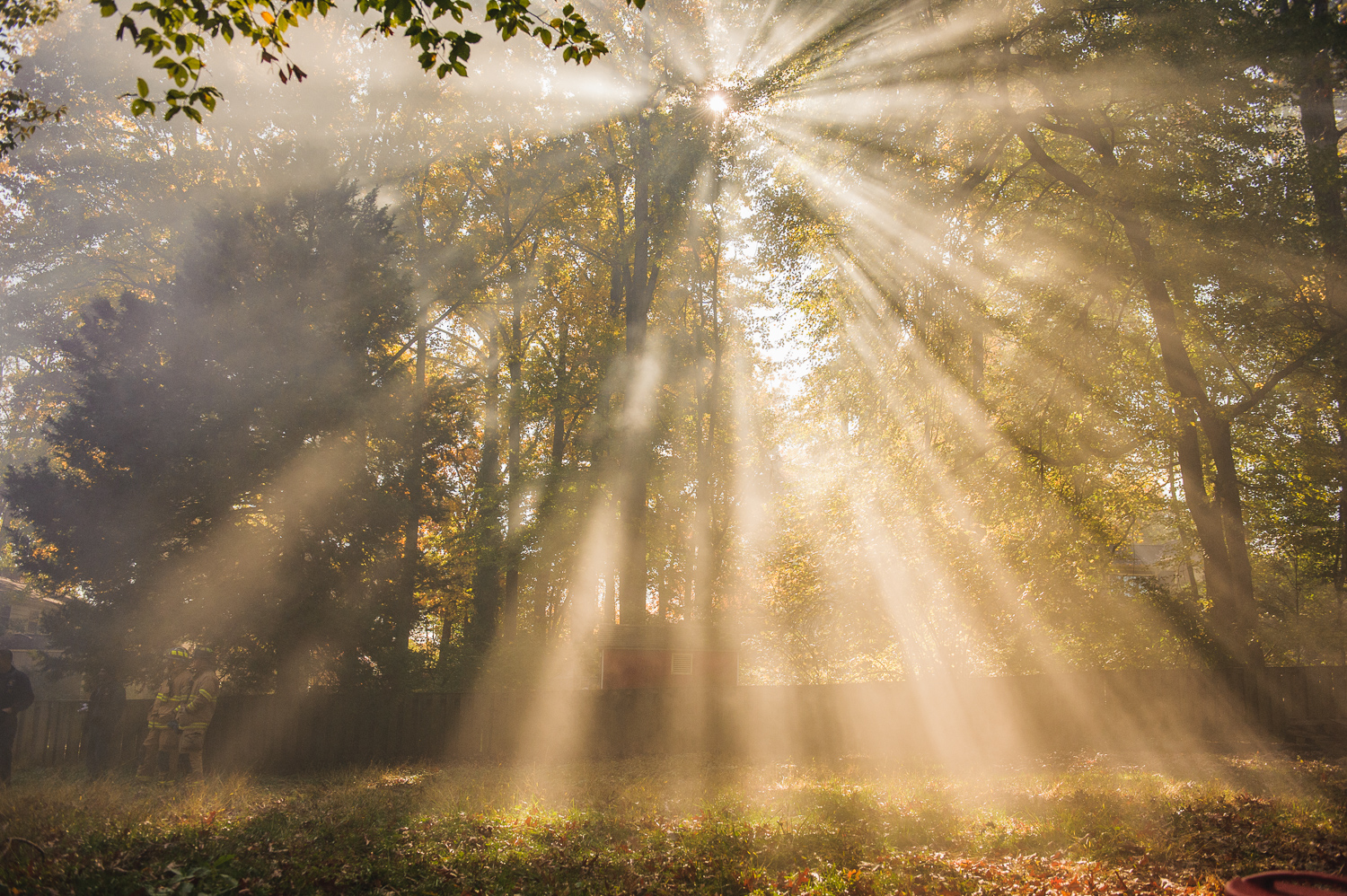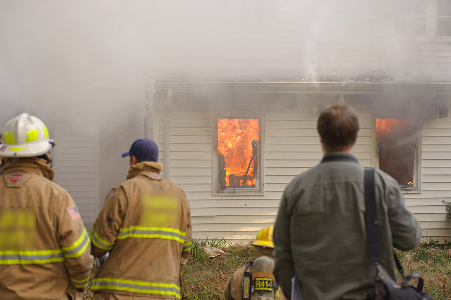 My husband and I built the house we currently live in. We tore down the previous house. Before we tore it down, we "donated" it to the local fire department to do a controlled burn as a training exercise for new firefighters. This was the morning of the burn, when they were setting up pallets and hay as kindling for the fire.