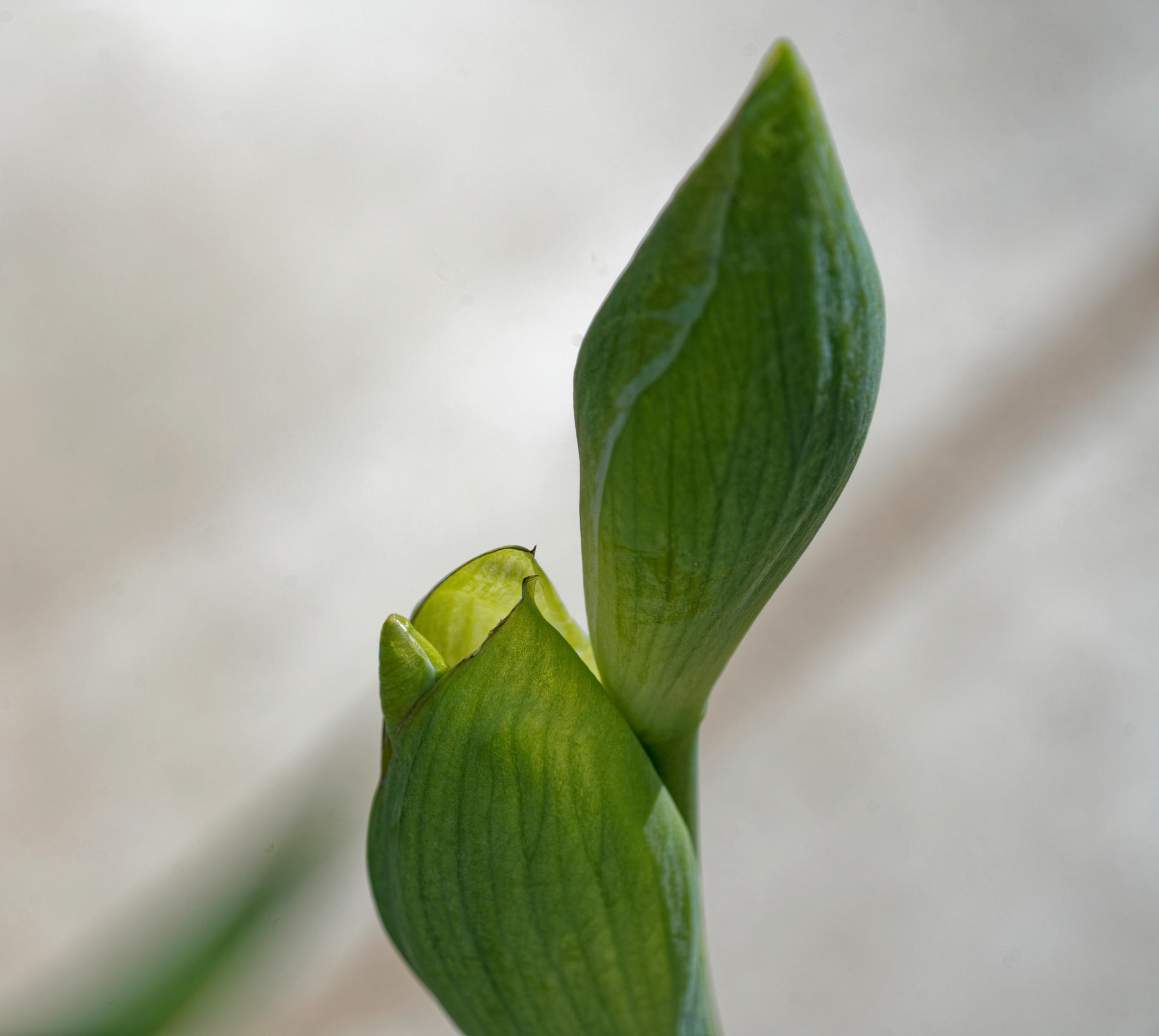 Sometimes I get too intent on one aspect of the subject matter and somewhat casually disregard the rest, and this image clearly points that up by the larger bud being not in sharp focus because I was more interested in playing with the slight glow and the smaller bud with its emerging tip. I really do need to be more mindful of my subject matter as a whole and not just one part of it! Sometimes using a different aperture with the idea of creating blur and bokeh just isn't going to cut the mustard. As for the green from the bottom left, yeah, while editing the image I thought about removing it but then decided I liked it because it did sort of lead the eye to the primary subject.