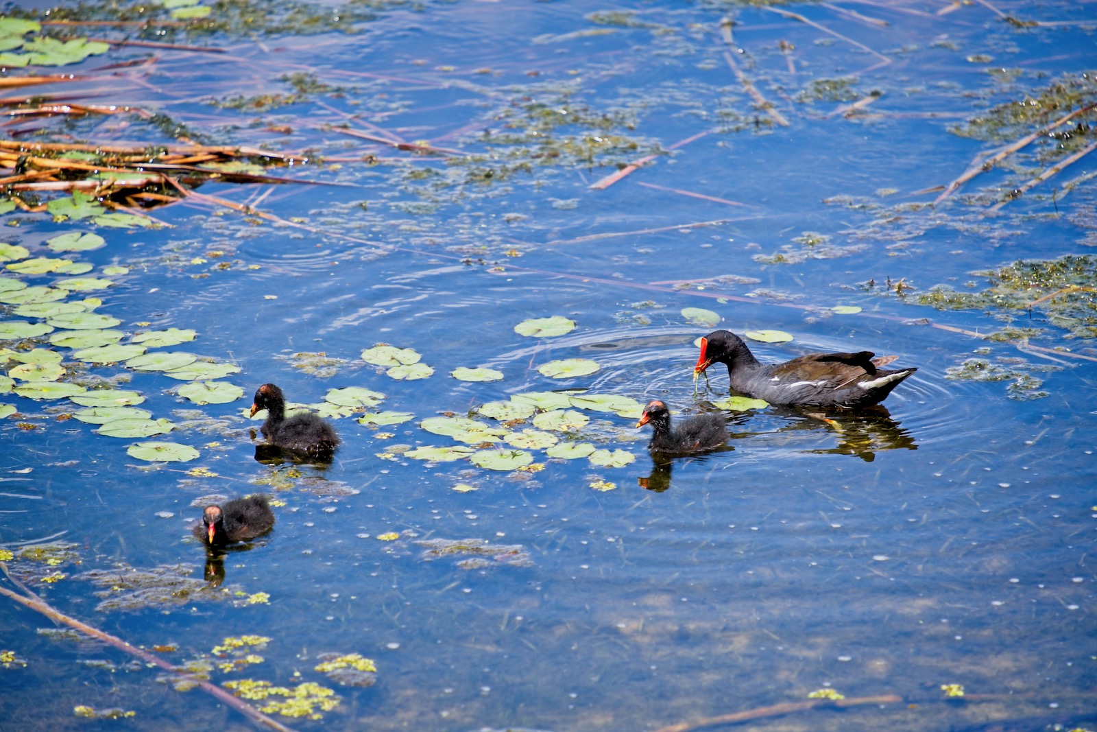 Chris, there is a complexity of regeneration at play here, ranging from the immediately obvious regeneration of life with the new brood remaining safely close to their parent through to the sense of new emergence of the plant life and the output of that plant matter from the birds body that will feed and nourish plants on the ground and within the water. Great stuff! It's the observation of such cycles and interactions that form a major part of the Permaculture practices that we apply here in our garden. Some people would look at this scene and see a messy pond or waterway that needs tidying up, I don't, I see the complexities of regeneration at play!