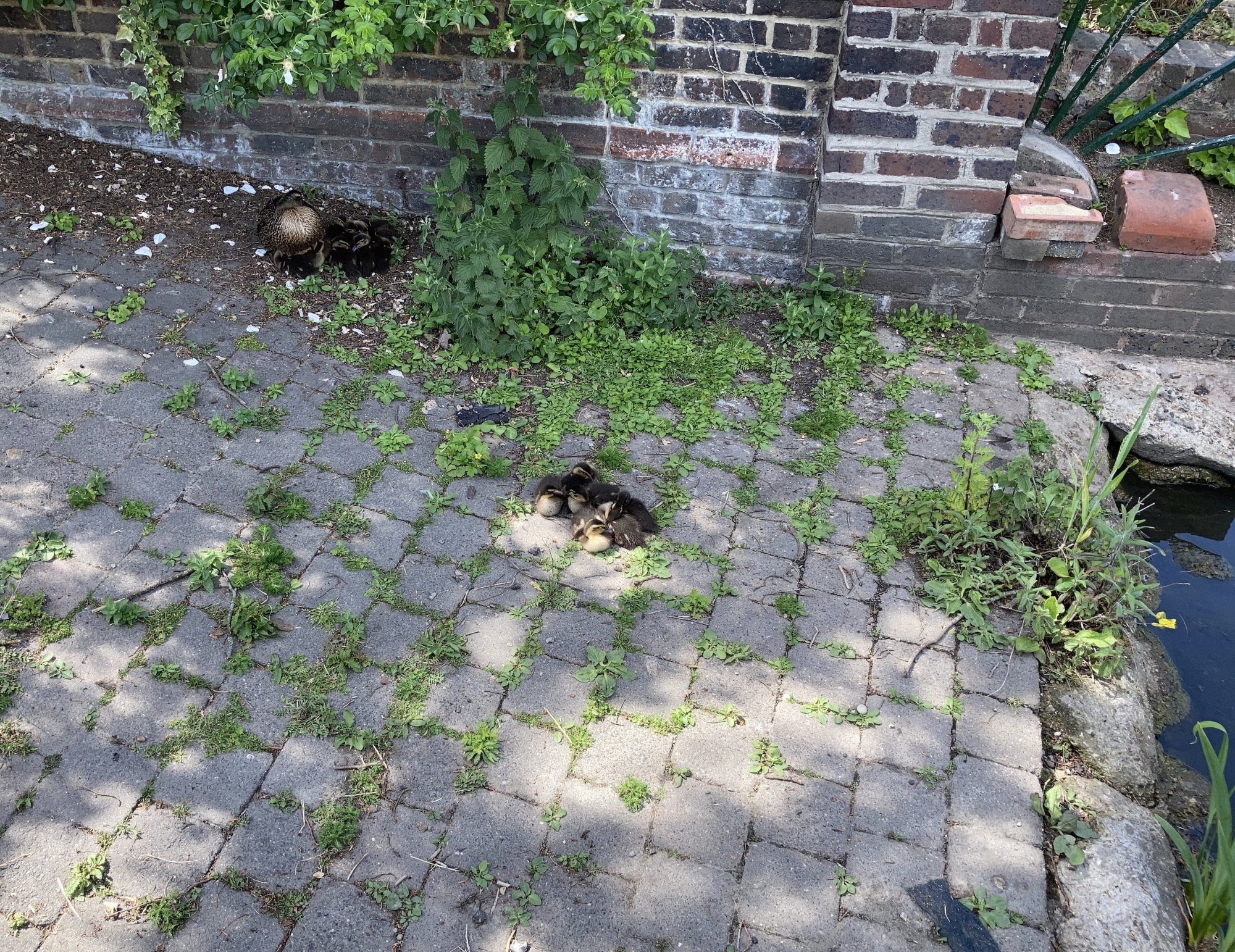 Spring has sprung here, well and truly. The plants of all manner forcing their way through the tight gaps in the paving, the bubba ducklings and the trailing plants from above all illustrate the regeneration of life.