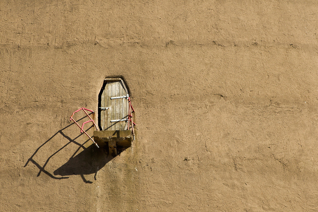 Texture. And fear. I hope that door is very very secure on the other side to keep someone from accidentally wandering outside. The wall and the door both have great textures, the metal on the door probably does too, but it appears to have been lost in the highlights a touch.