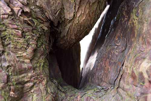 At first glance I thought this was a rock/cave and then I looked at it closer and realized that it was a tree/wood. There appear to be a variety of textures within the wood as well as the moss on the tree. Makes me wonder if there's a difference in moisture as well from the outer parts to the inner/darker parts. This one does a good job at not only showing texture, but making me ask questions about textures that aren't shown.