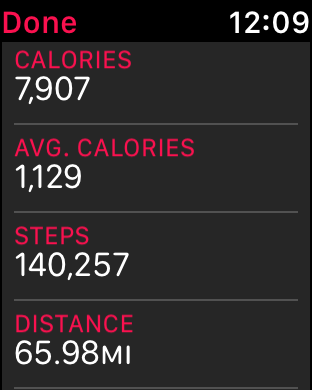 This is my all time best so far. I set 140K as my goal for this week and got it. Got all kinds of achievements on my watch Sunday, 200%, 300% and 400% plus All the 7s and the new move record. That was my first 400%. Obviously, I gotta break this next week!