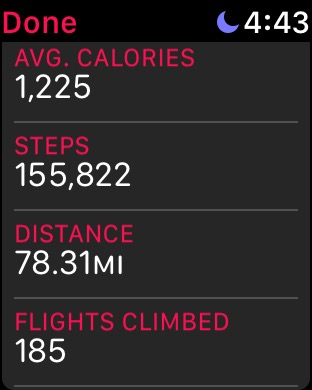 I'm impressed that you did many more flights, a few more miles, 5K more steps -- in 2/3 less the calories that I burned.
