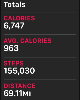 I fell short of my goal for the week. I was exhausted on Saturday and after closing my move ring, I had to stop so I only had just over 14,000 steps for the day. I was able to get in almost 33,000 steps yesterday to try and catch up.