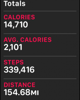 Open Activity App and Force Press the three circles (on a Monday only) to get last weeks totals - press Weekly Summary