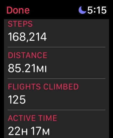 Apple fanboy macrumors Ivy Bridge Feb 21, 2012 61,007 62,671 Behind the Lens, UK Aug 15, 2022 #1,840 My steps are up but my distance is down. Go figure! Reactions: Nina Rosso, JBinPDX, sananda and 1 other person