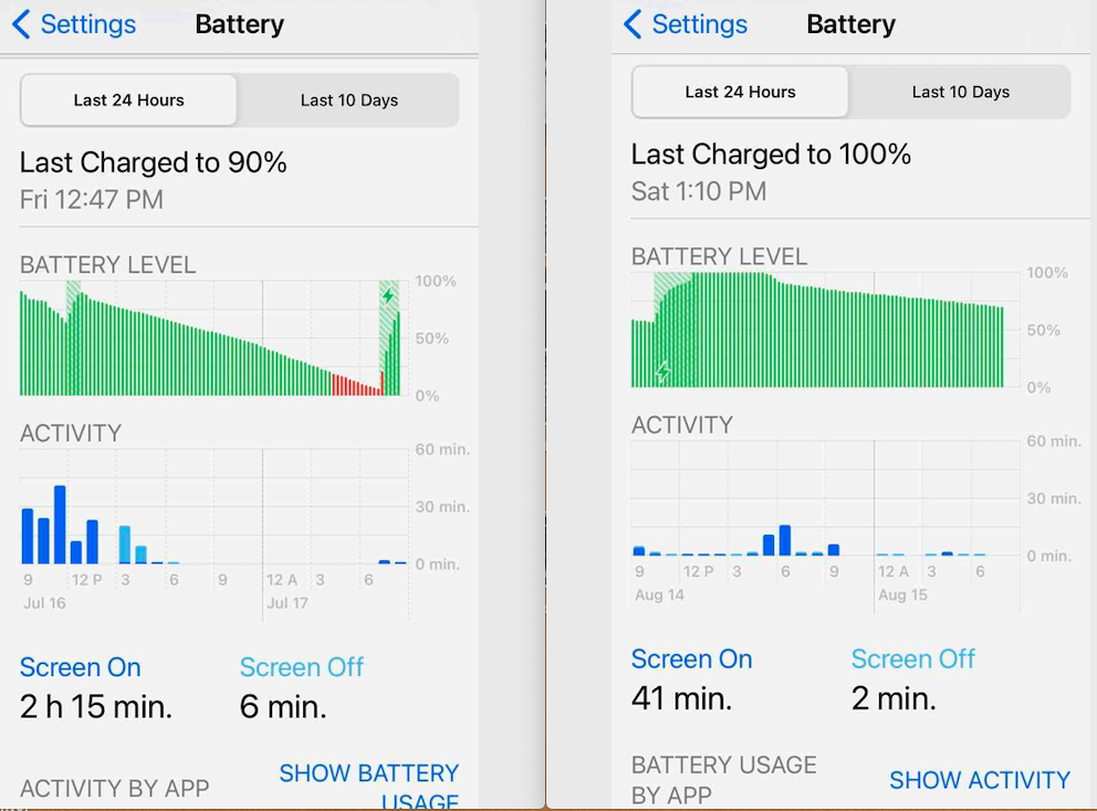 I left my phone off the charger (last night) to confirm it does not drain the battery like it did a month ago - see screen shots below. Jul 16th vs Aug 15