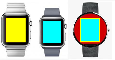 Playing devil's advoate, using the estimated screen sizes from Gizmag for the two Apple types, and overlaying them on the Moto 360: