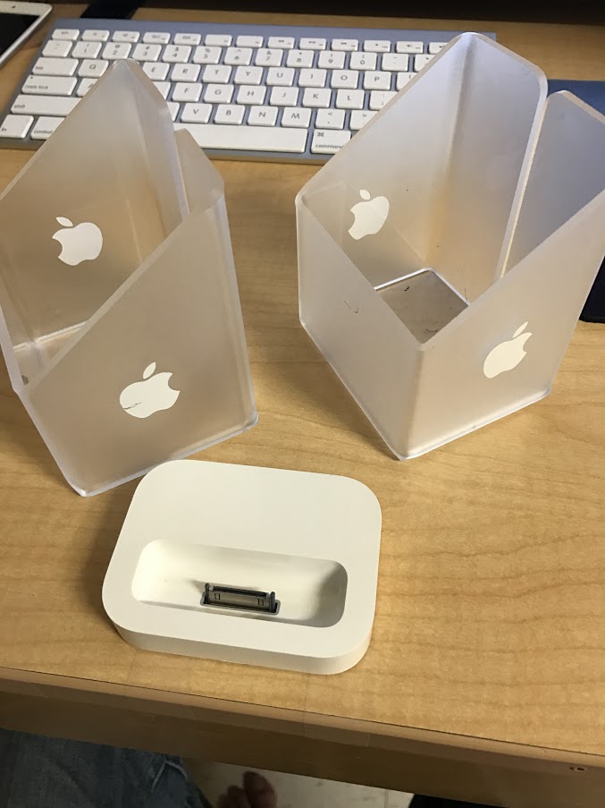 I found these along with a 2003 iPod dock at a local thrift store today. paid $2.75 for all 3 items. I think the clear plastic things are store display holders but im not sure for what or what exactly they're worth.