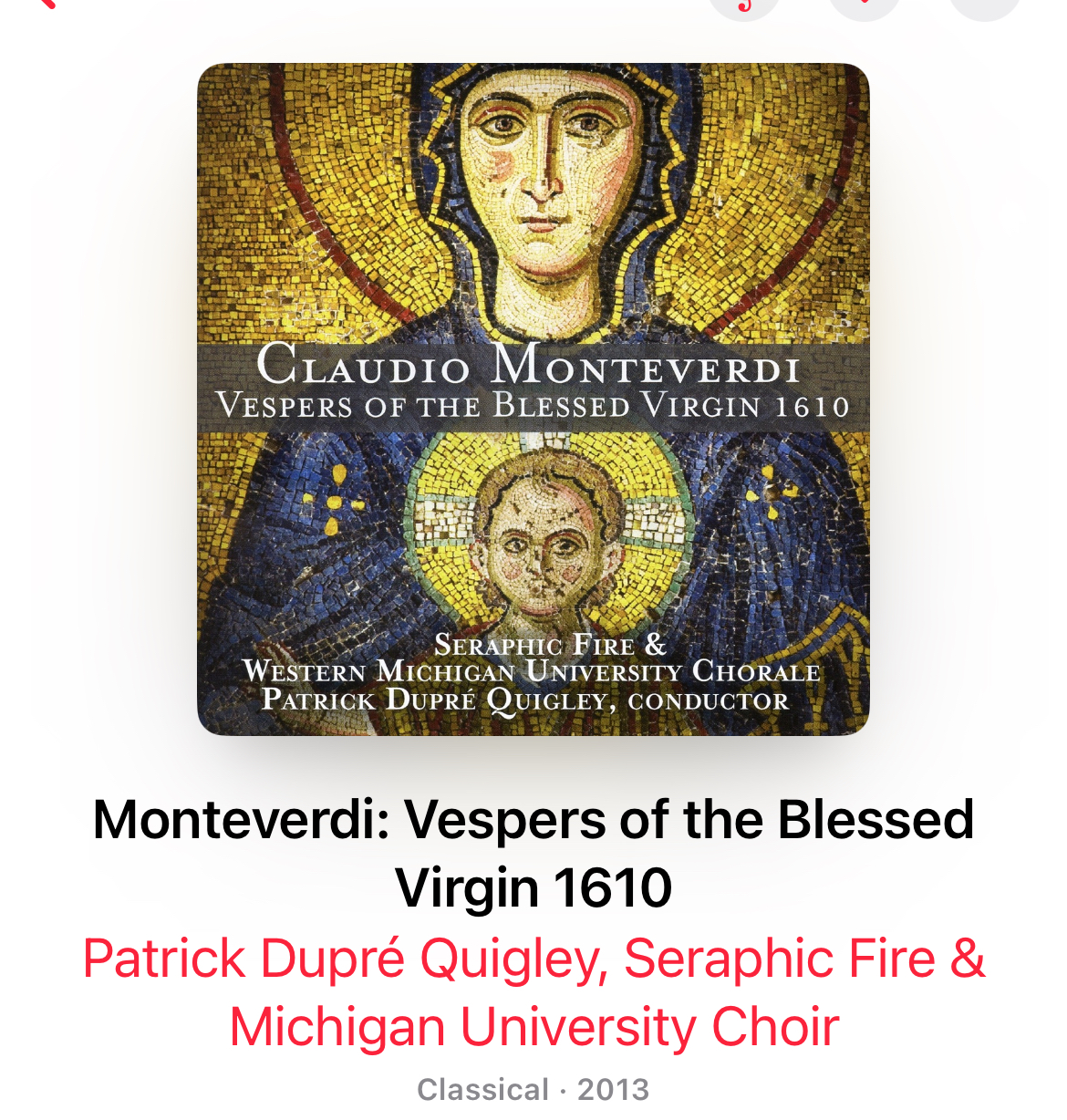 Laetatus Sum by Claudio Monteverdi, (@rm5, if you haven't heard - or, listened to, - this arresting Baroque piece of music before now, I recommend that you do so, the bass line is just terrific, to my mind), and the marvellous Ground in C Minor by William Croft.