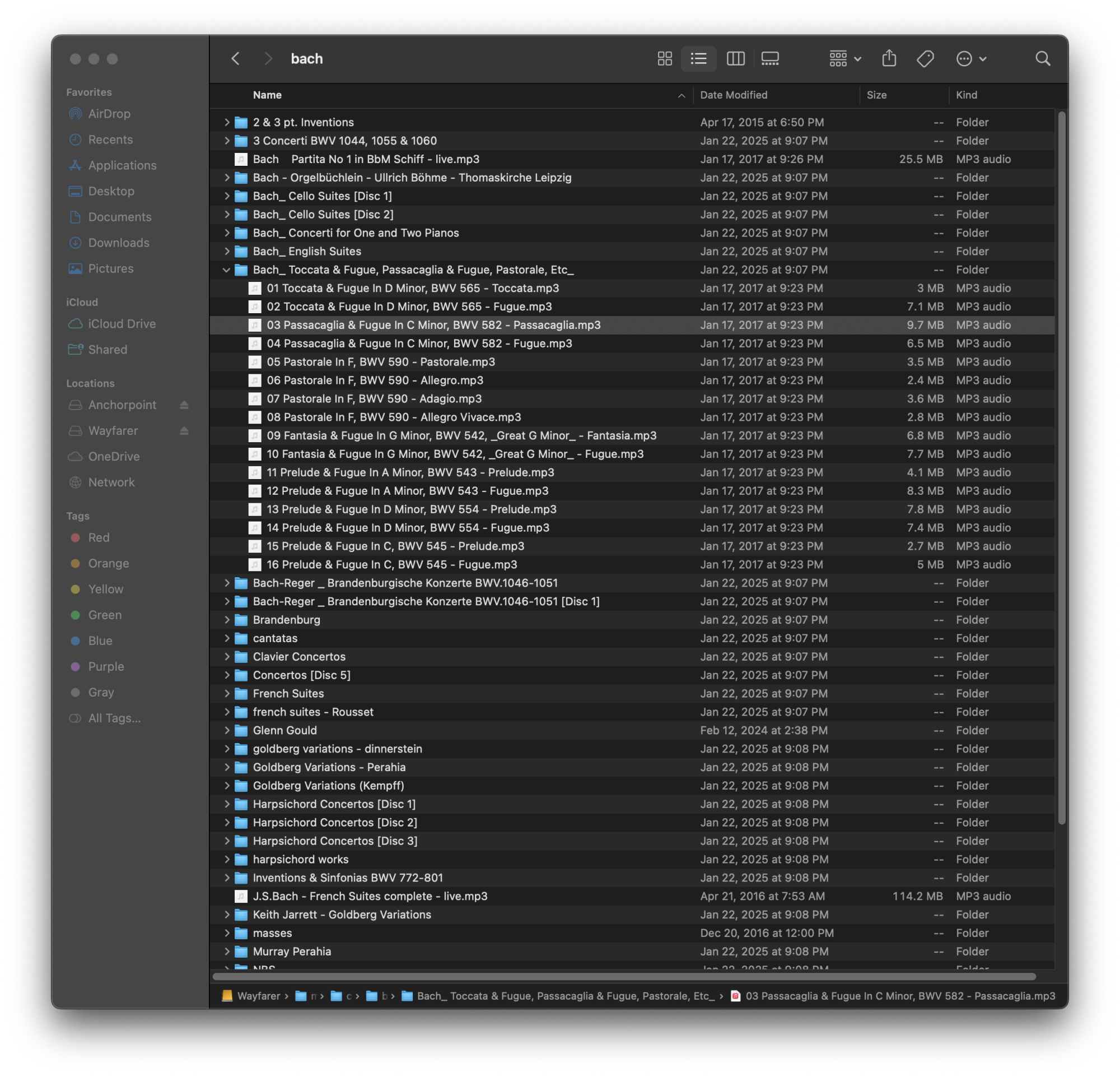 Very impressive collection.I got a bunch of Bach's organ works (the 16 tracks in the opened folder) on my hard drive. Love it! Lucky to have quite an extensive Bach folder, as you can see.