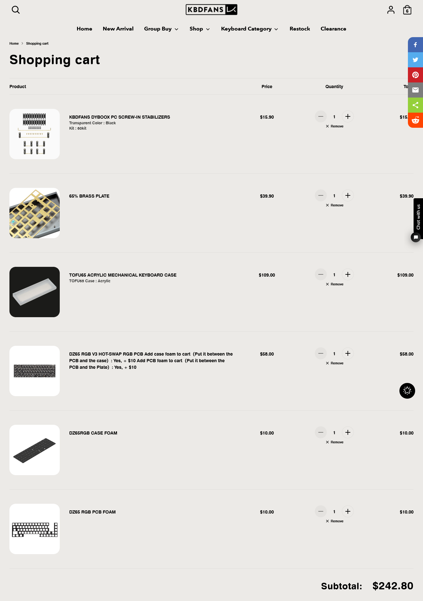Also NovelKeys Cream tactile switches, still deciding on keycaps. So this will just sit in the cart..