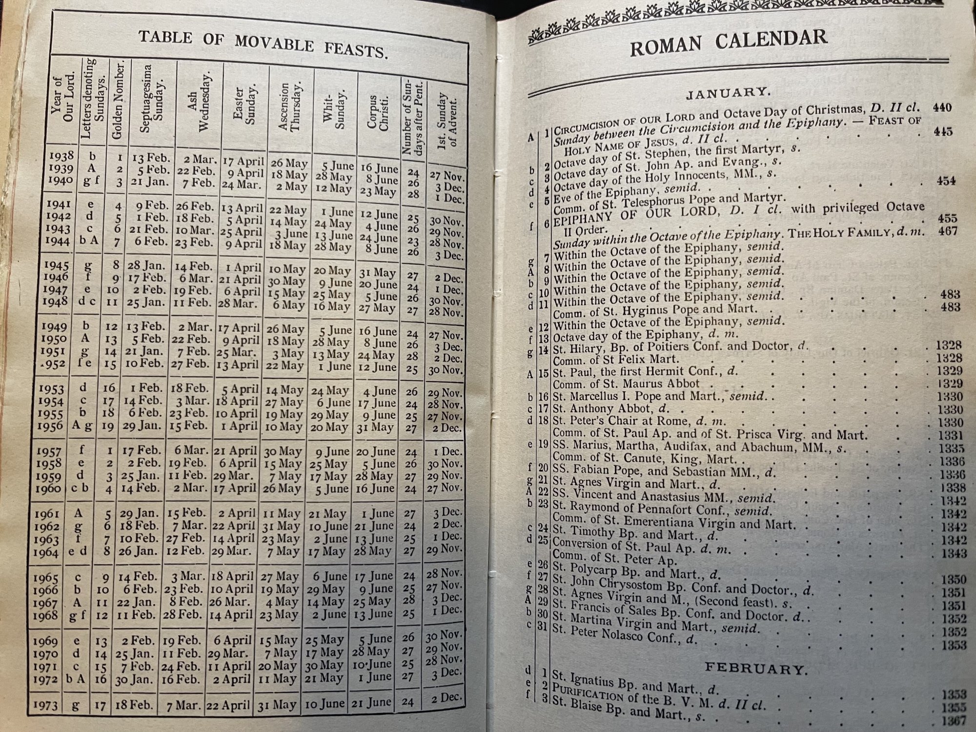 The calendar. No respectable liturgical book would skip a good, complex calendar. Here’s the one in my edition which is the old pre-reform calendar.