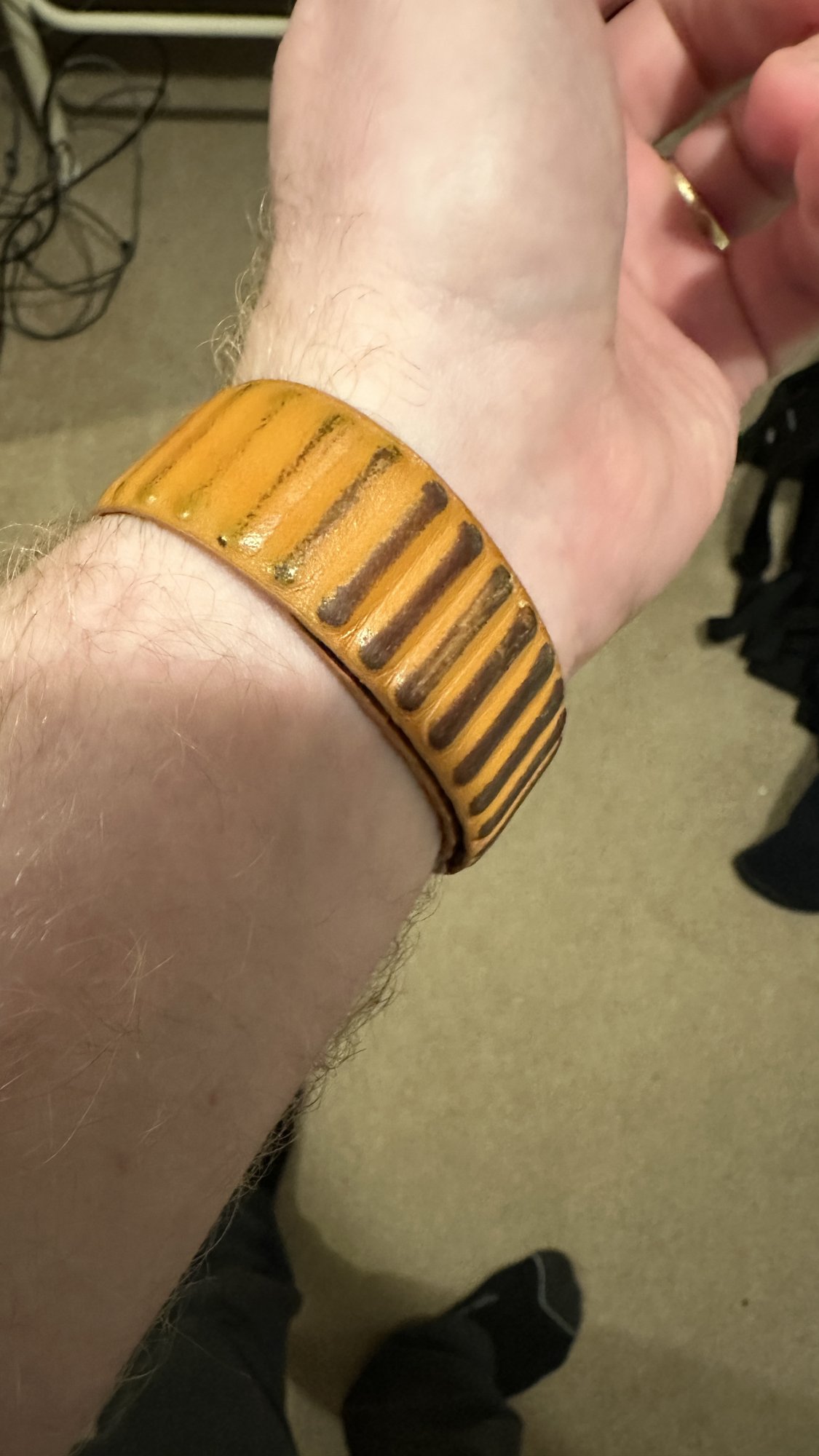 Your Nomad band doesn’t have the protective coating, so it wears the leather from the start.