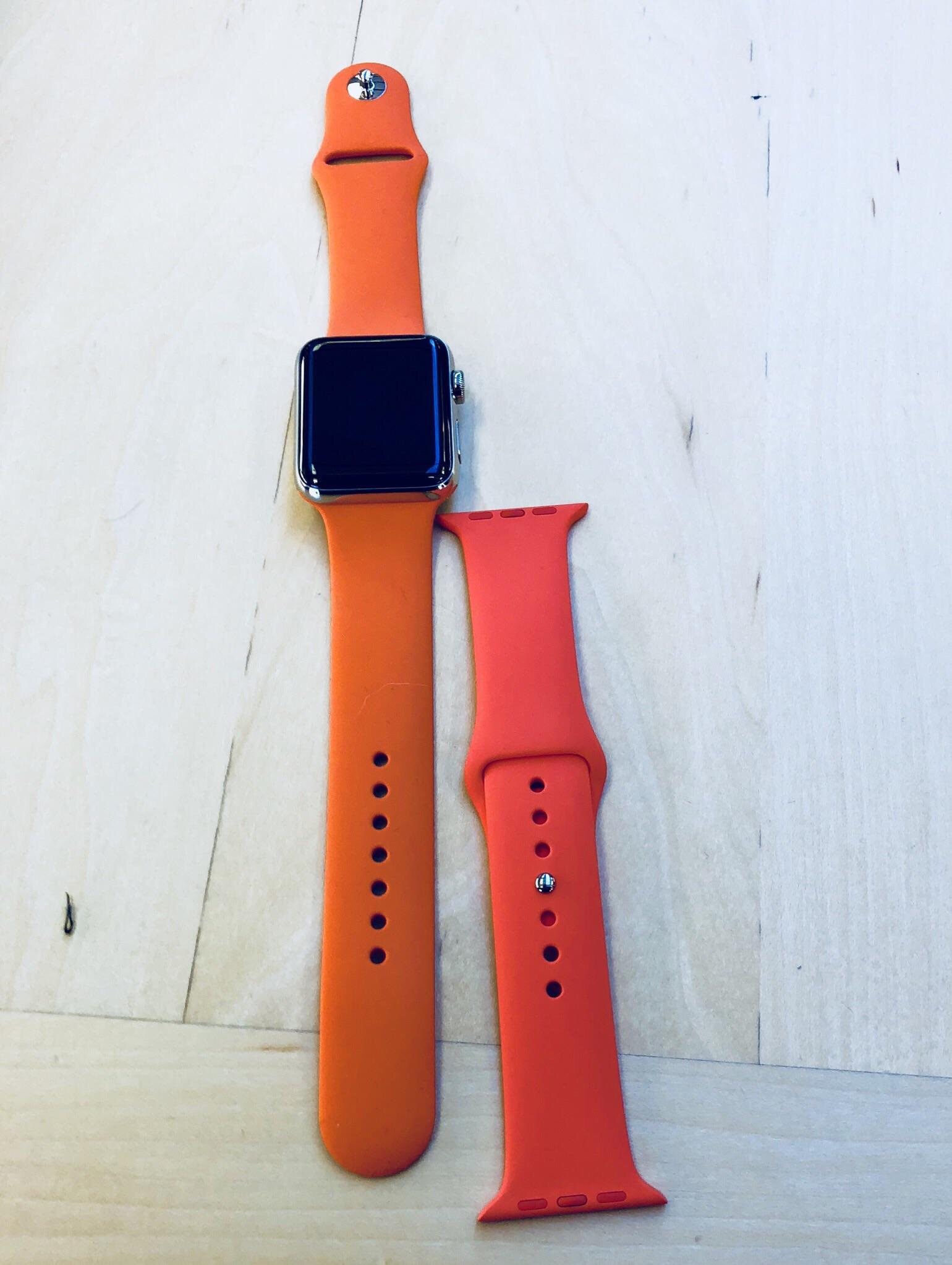 The Hermès orange is on the watch. The spicy orange is the standalone strap.