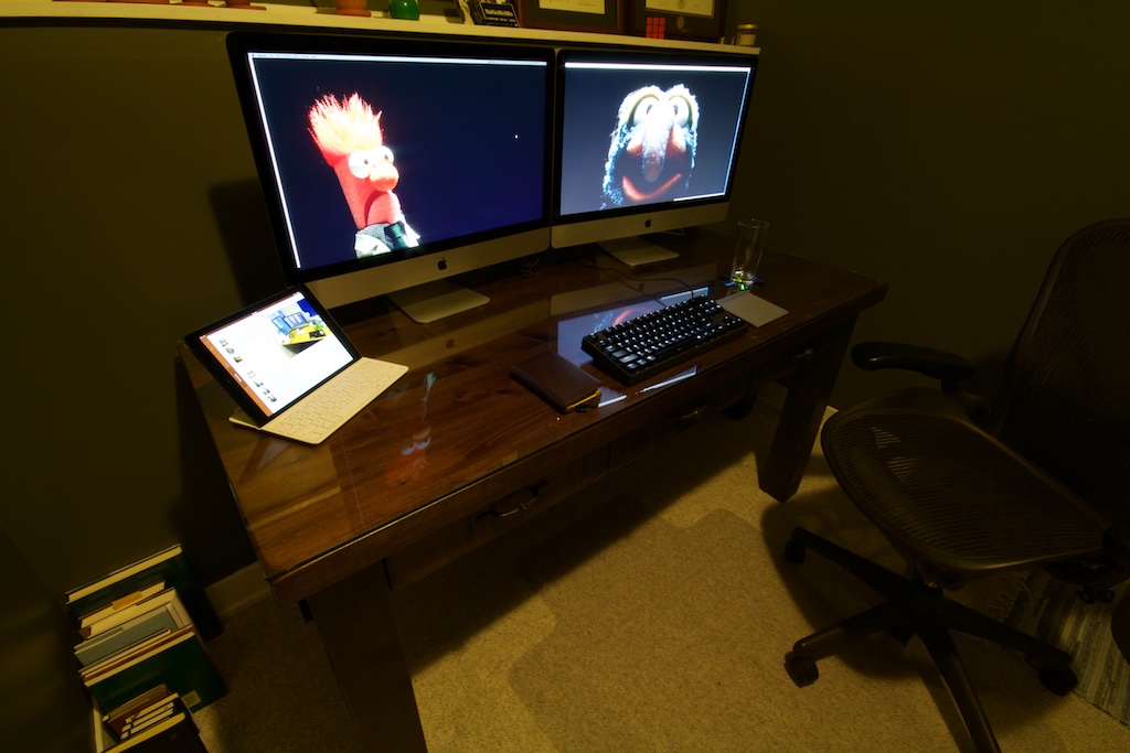So it is one mighty big desk so you would need to be sure it doesn't over power the room, but if you have the space then I can't think of a better place to park an iMac.