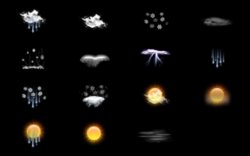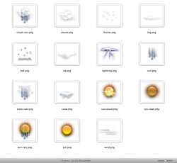 The icon for the pieces bouncing around is for hail, and I don't think that's intended to be used for forecasts, since hail is usually a highly acute condition of thunderstorms. Rather, it's probably used as the larger "current conditions" icon when a nearby thunderstorm is expected to produce hail. In iOS 6, I have seen this icon, though, in forecasts that included thunderstorms showing the possibility of producing hail.