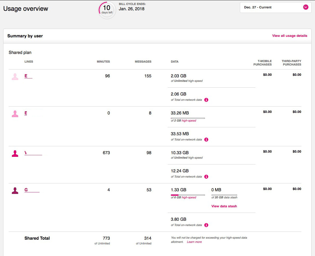 Below, take a look at the third line. See how many minutes my wife has? Normally she has more talk time but things have been slow with the holidays and all.
