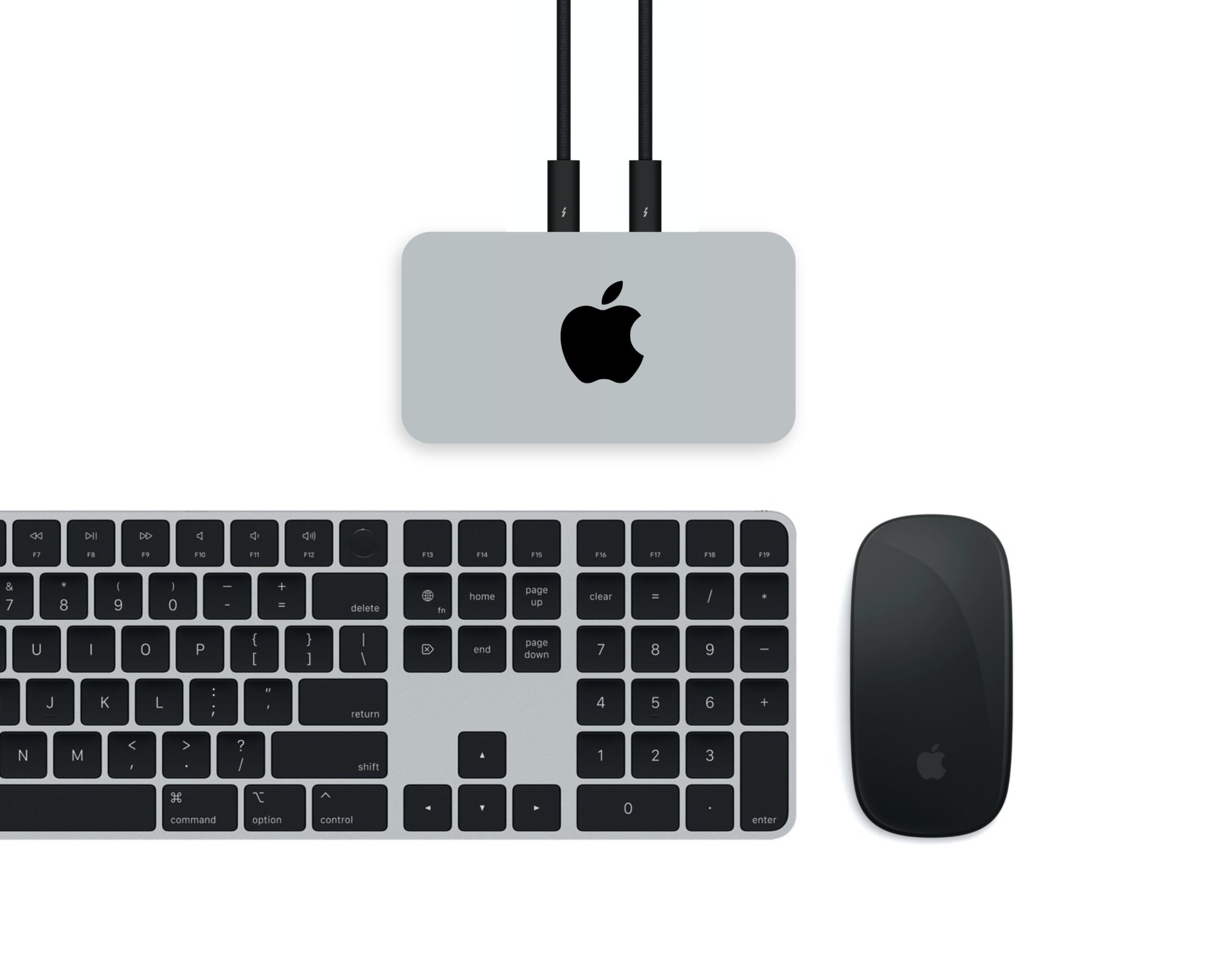 - Ultrawide monitor with KVM hub, a better mix of standardized jacks than Thunderbolt only, and more than one input for old fashioned bootcamp with a separate PC for those that need it.