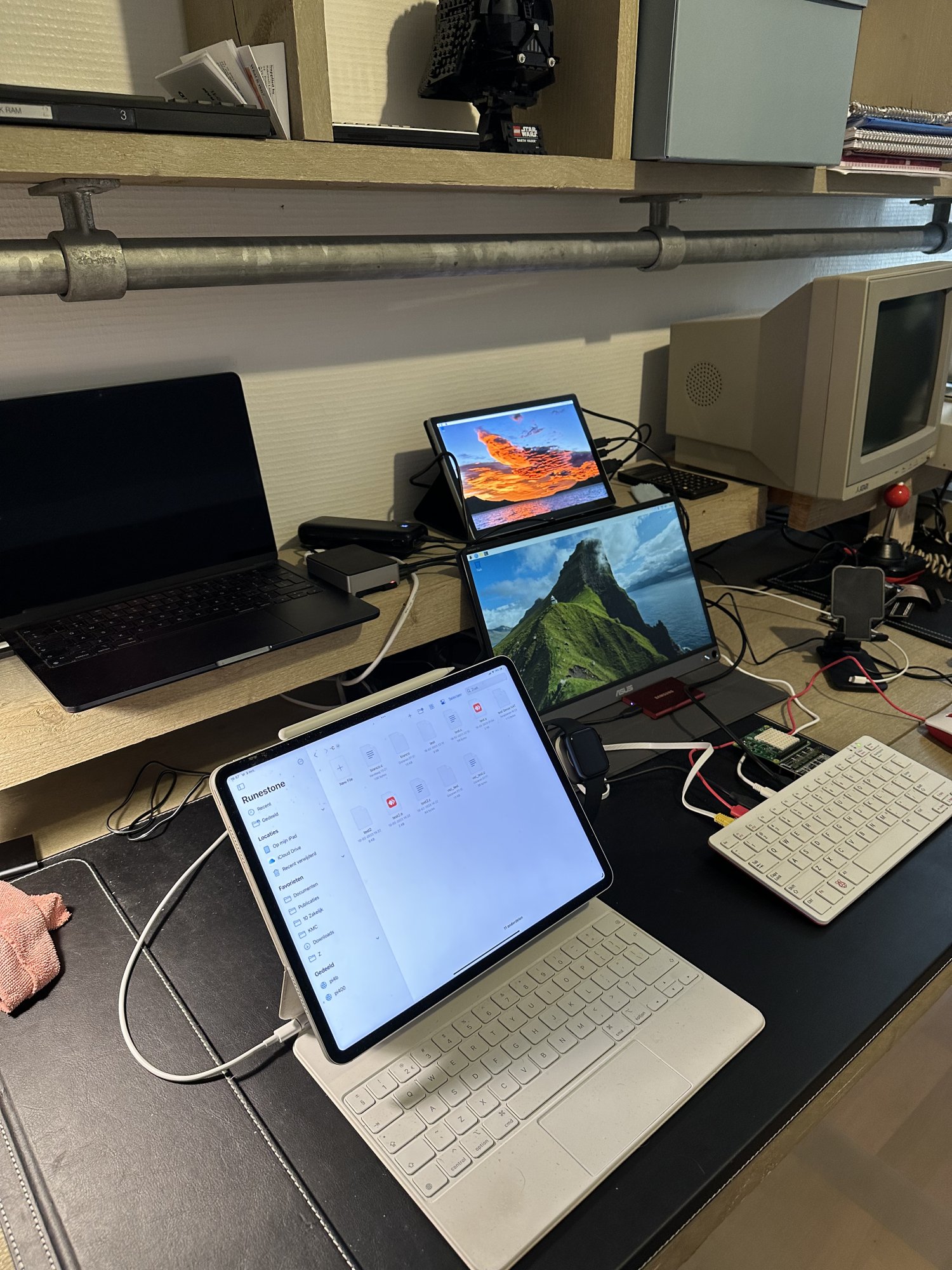 I like the woven cable protectors. They come in several sizes and you can easily combine and hide plenty of cables.Cable management is mostly under control but I could not figure out a good option to "channel" the cables from the desk to the drawer. The cable length varies greatly between drawer closed and open. Until I get a USB-C monitor that can be connected with one cable, there is no way around channeling the HMDI + USB-A + USB-C cross from the desk to the drawer. Any ideas and improvements are welcome.![]()