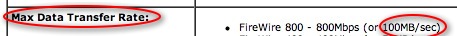 I didn't exaggerate anything. Unlike USB, Firewire IS capable of approaching or reaching its theoretical limit, since it doesn't depend on CPU to support the transfer:...which is unprobable due to the fact thats the actual maximun "theoretical" bus speed, which is usually not achieved,...