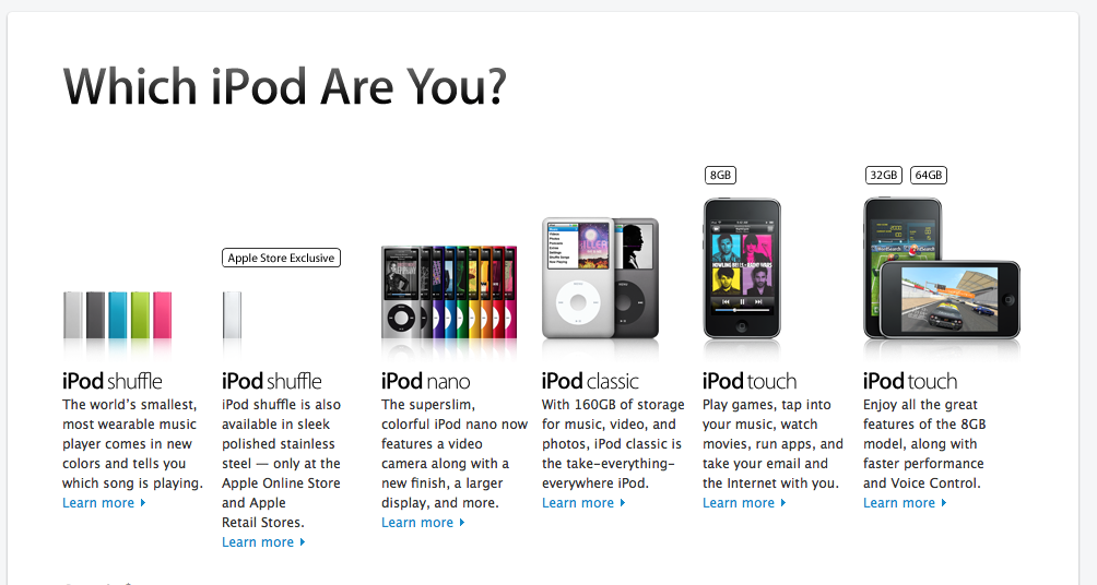 I think the graphic you showed at least explains everything in a clean fashion and the naming scheme for the iPods were a lot more clearer.