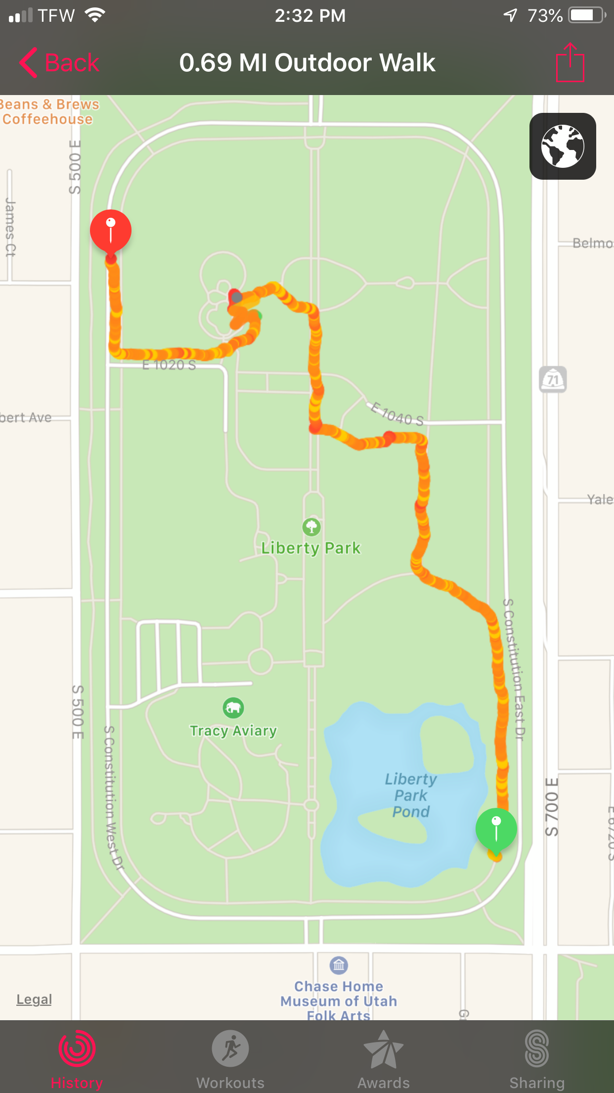 Okay, today I decided to give the GPS on my brand new (2 days) AWS4. So, I went to a park here locally, that I have done many walks around, and started my walk. After walking about 1/4 mile, I noticed that they were filming a movie, and I decided to take a picture. A guy walked up and said "Sorry, no pictures, closed set". Okay, well, this became a challenge.. (G), and I walked a little farther, and sat down to assess the situation. Seeing "guards" posted all over the place, I decided to give up, and continued on my walk. Quite some time later, I noticed that the watch/app (WalkOutdoors) was not recording, so I sat down on a bench, stopped that activity, and started a second one, using the same app, but this time, turning off Bluetooth on my phone to force the GPS on the watch to track the route. That one was fine.