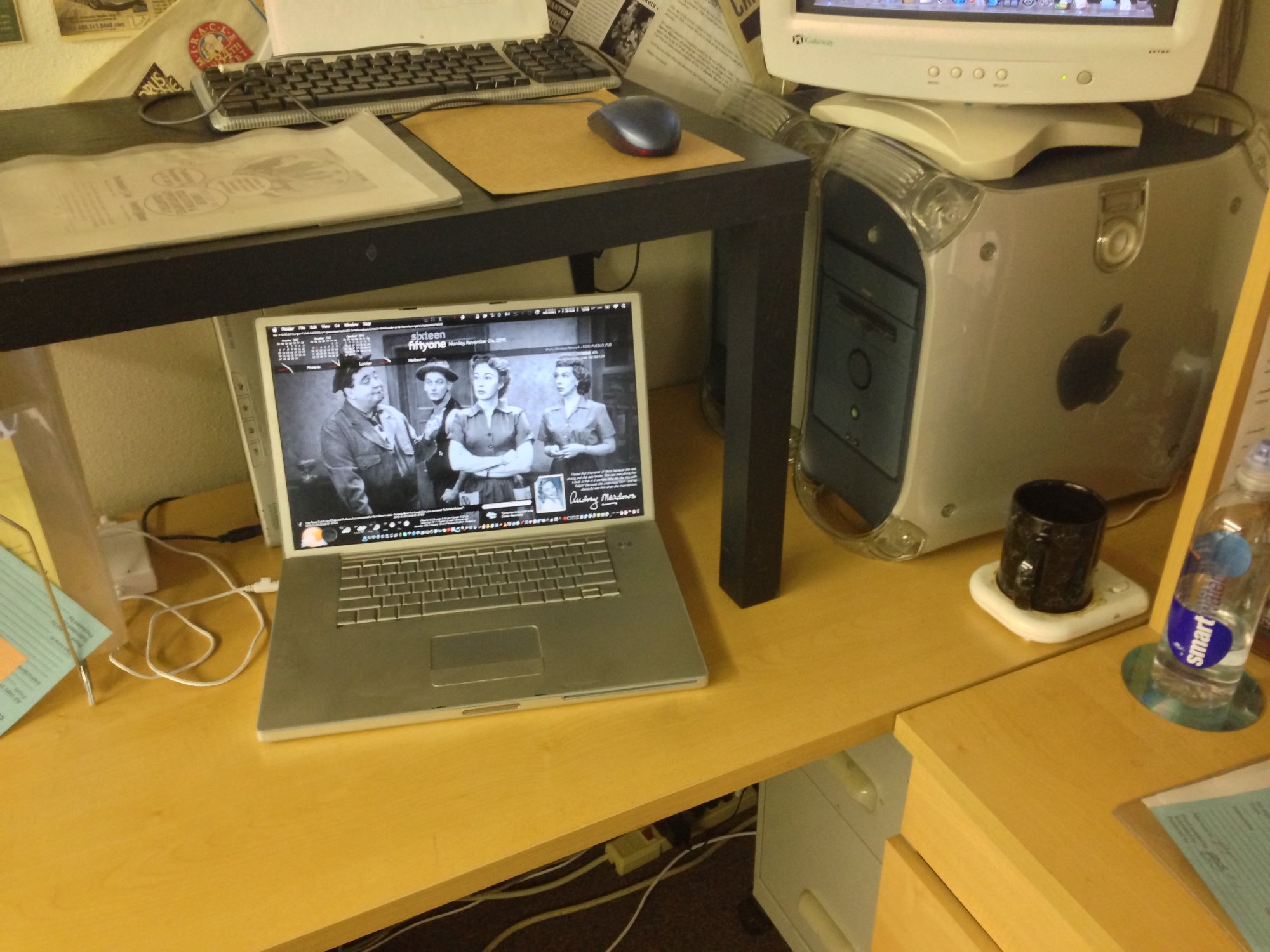 My first smartphone was 2009, but I didn't really start taking pictures of my Macs until around 2010-2011 when I joined Facebook. Partly the reason for that was until late 2009 I didn't OWN more than 1 Mac. And the Macs at work at that time I had not developed the system I was using later on (for how I was going to use them).Flickr is great for that - type in any model Mac and there's 100s of proud owners showing them off in the 2000s.