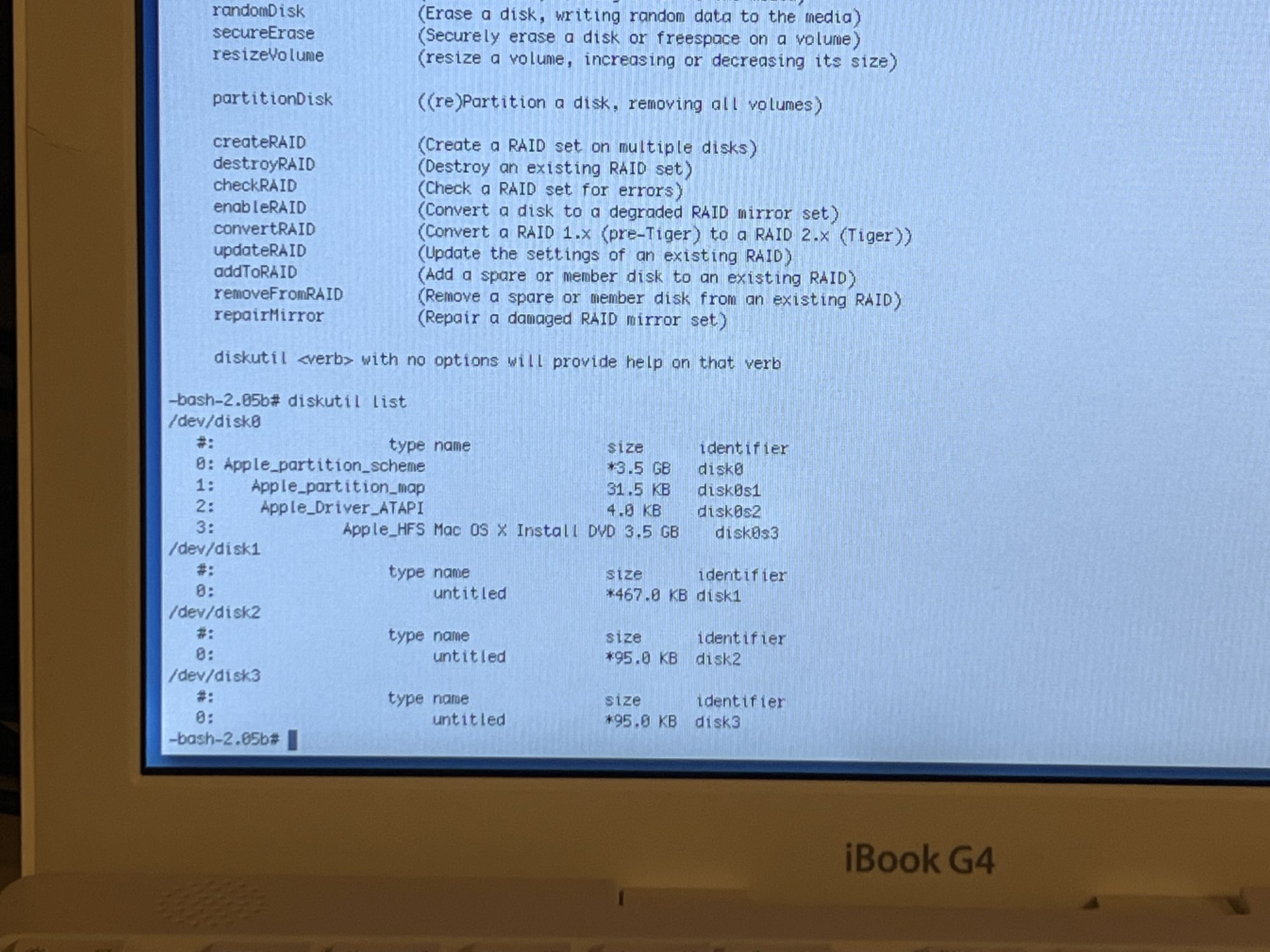 Guys I got an iBook from 2004. Last time when I was using it, 10 years ago, it was working flawlessly. As I know during this 10 years another person tried to reinstall operating system. Now I’ve got this laptop back and Panther installation disc doesn’t seem to see HDD. But I definitely hear it’s working and it’s not clicking with heads or anything else.