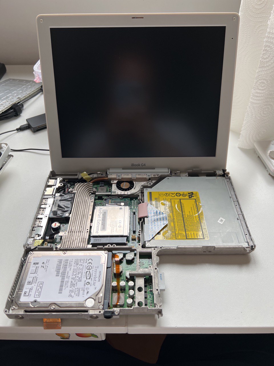 Finally got my dream iMac, a tangerine tray loading iMac G3. It has a 266mhz CPU and a 6 GB HDD. When it arrived, the CD-ROM bezel had fallen off during shipping, so I am looking into ways of reattaching the bezel as double sided tape doesn't work for long. I erased the HDD and did a fresh install of OS 9 and I also removed the PRAM battery. The Mac came with 288 MB of RAM, but after digging around in my bag of RAM sticks, I found a compatible 256 MB module and now the Mac has 512 MB of RAM. I think its ridiculous that Apple made it so that you have to remove the CPU heat sink in order to get at the lower RAM slot. I may or may not end up putting 10.2 or 10.3 on here alongside OS 9.