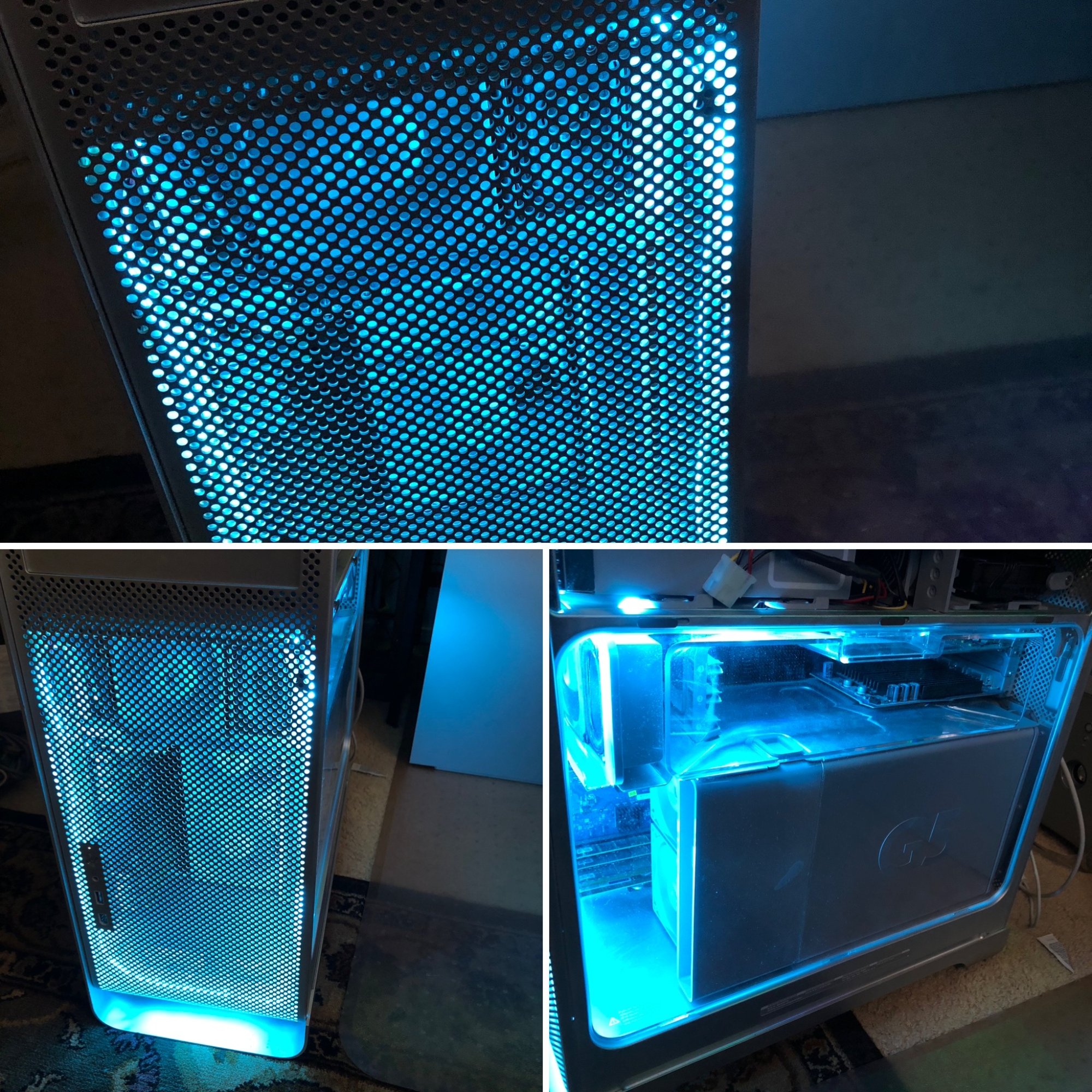 Had me thinking that would look not outta place if seen some where in the back ground of the movie 'Alien'. Be a great one for the movie 'Mac spotters'.Ok, got around to adding cobalt blue LED to my Powermac G5. The led strip I bought was sent with the wrong tip (6.5mm barrel jack) so I cobbled together 12v & ground molex to a 4.5mm plug to power the strip and voila, it turned on. I split power from the optical drive. Being LED I thought the 3.3v would work but not enough juice.