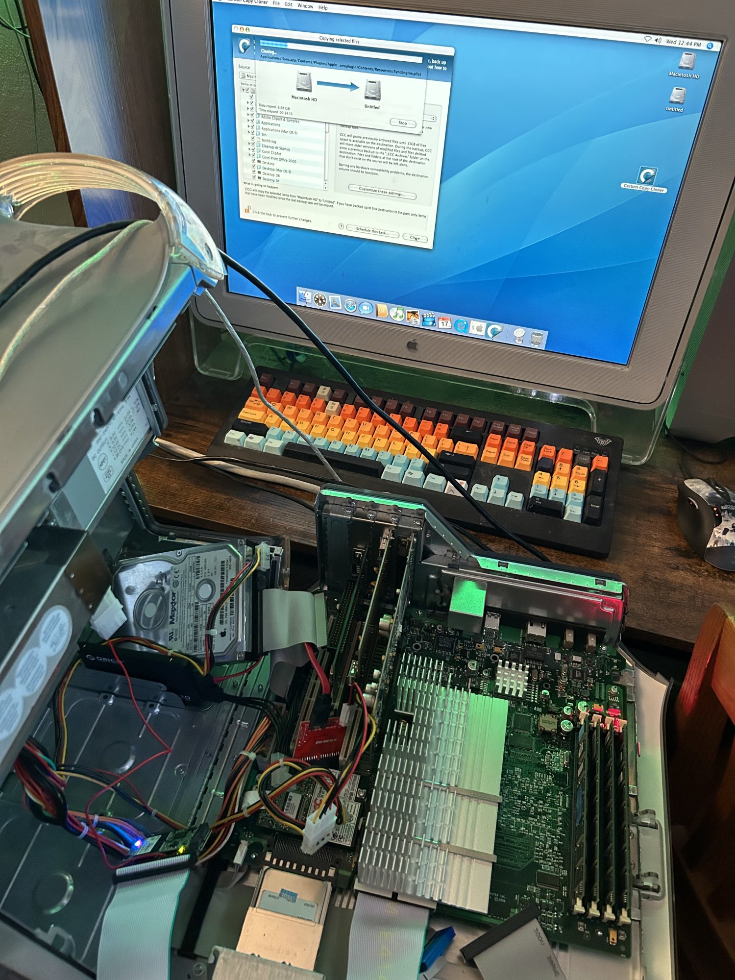 Love those ‘old school’ monitors.Ok now the msata decided to work lol. Deleted first and then partitioned and am now cloning the maxtor. We’ll see if it’s bootable after cloning. The previous clone with the ssd was successful however I could not get it to boot - would hang on the Tiger boot screen. This same adapter works great in my MDD so was surprised to see it hang however I think it is more to do with the clone as I do get to the boot screen which illustrates that the adapter is working. If this next attempt hangs as well, I’ll do a fresh install vs clone.