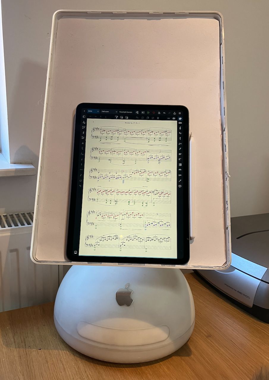 The two paired monitors are connected to my Mac Studio. The 30" Cinema HD display is connected to the AirQuad. The AirQuad keyboard and mouse are a vintage Logitech S530 set, wireless, and with wonderful key press feedback (for the keyboard) and hand feel (for the mouse, which has a satisfying heft to it). The Mac Studio keyboard is standard Apple stuff; its mouse is a recent Logi offer which is quite good.