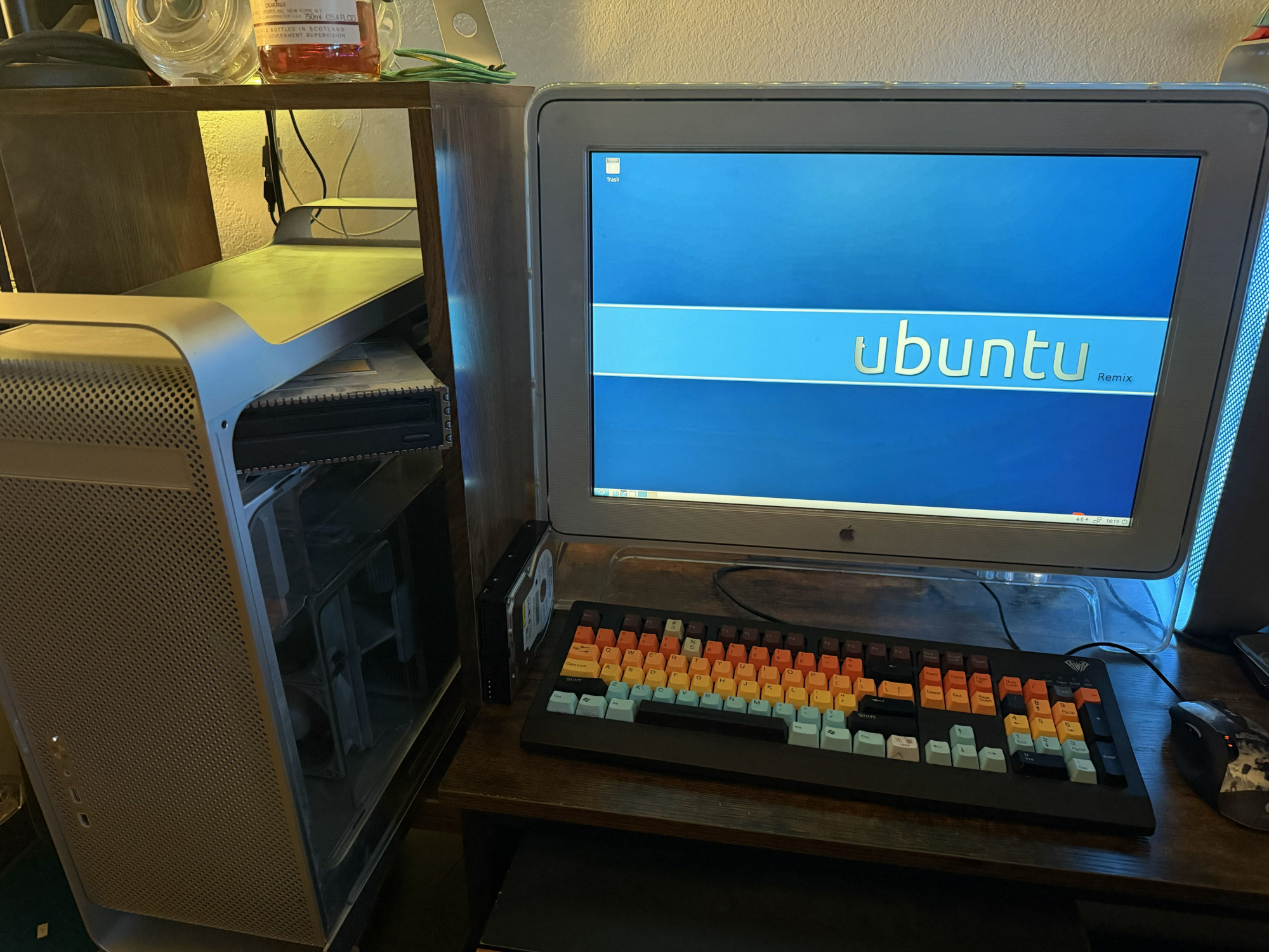 Linux has been a pain lol. Comparatively on early Intel stuff, Linux is a breeze but on this PMG5, I effectively failed in getting Adelie up and running - big fat fail on Adelie lol. I was pumped to give adelie a try but will have to come back to it another time. As time is limited, I shifted to Debian which I have used on this particular powermac in the past. The problem is that I could not find a current big endian PPC64 build and the one I had on my NAS from around 2023, for whatever reason I could not get it to connect to any Debian repositories to DL the needed files. Truthfully, I was not a fan of Debian Mate anyways, so to complete my challenge, I pulled out my trusty Lubuntu remix 16.04 DVD and spun that up. It had been a while since I used Remix and while I had no issues installing, I did have issues getting the install to boot. I thought I was going crazy but had forgotten that to run on a G5, the drive has to be in the primary hdd slot1. Haha, Oh well, Im not 45 anymore lol. Brains going to mush evidently. Anyways, Wicknix let me in on the error of my ways, so I swapped the ssd from 2 to 1 and bam, remix fired right up.