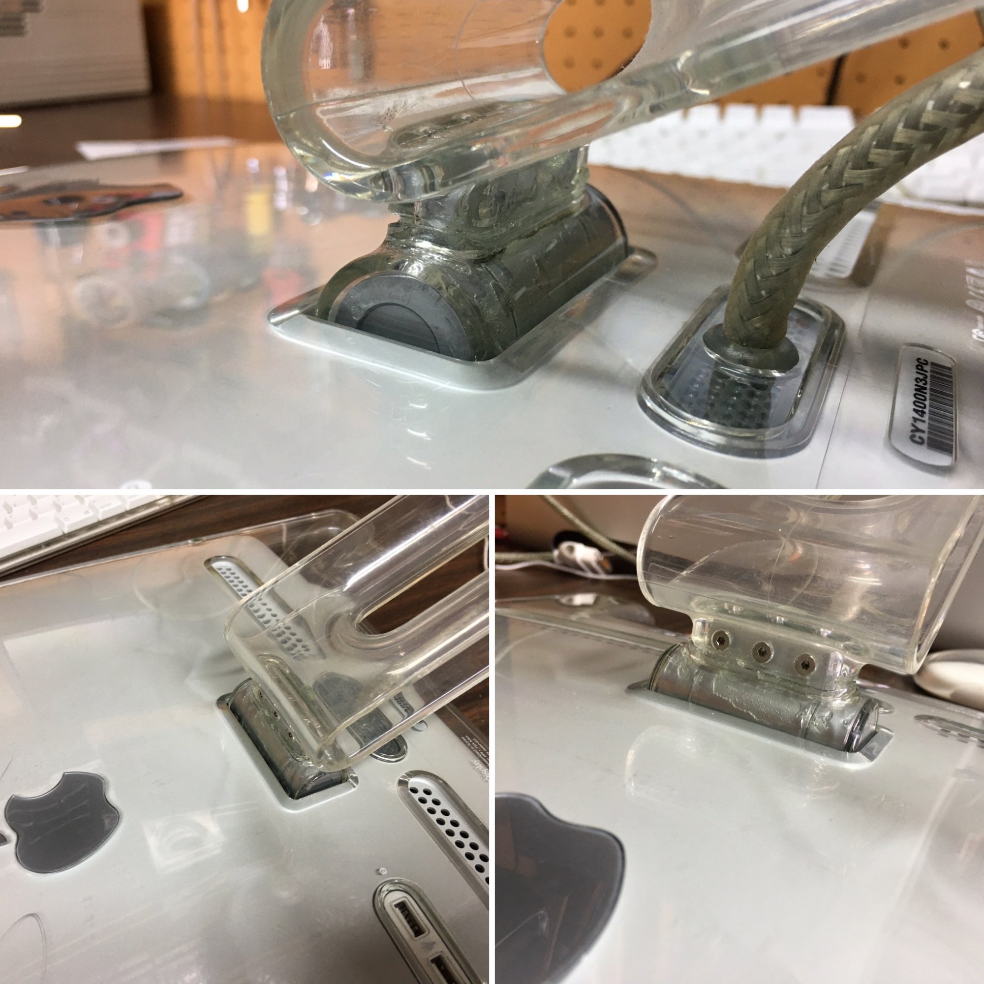 Yeah this works like a champ. Seeing how this stands up, I think I would try it again just by re adhering the hinge itself keeping the cinema displays acrylic bits separate and its ability to be disassembled easily intact.I “fixed” a free to me 17” adc M2454 with a broken tripod by first removing and then pumping epoxy into the hinge and reattaching the broken bit to it. I let that cure for 48hrs. That right there was very sturdy and rock hard -probably would work on its own. Anyhow I then reattached that to the chassis, returned the acrylic shroud to the back of the lcd and using more epoxy, I then glued the surrounding plastic bit back to the hinge with more amounts of clear epoxy and returning the screws before allowing it to cure as one piece.