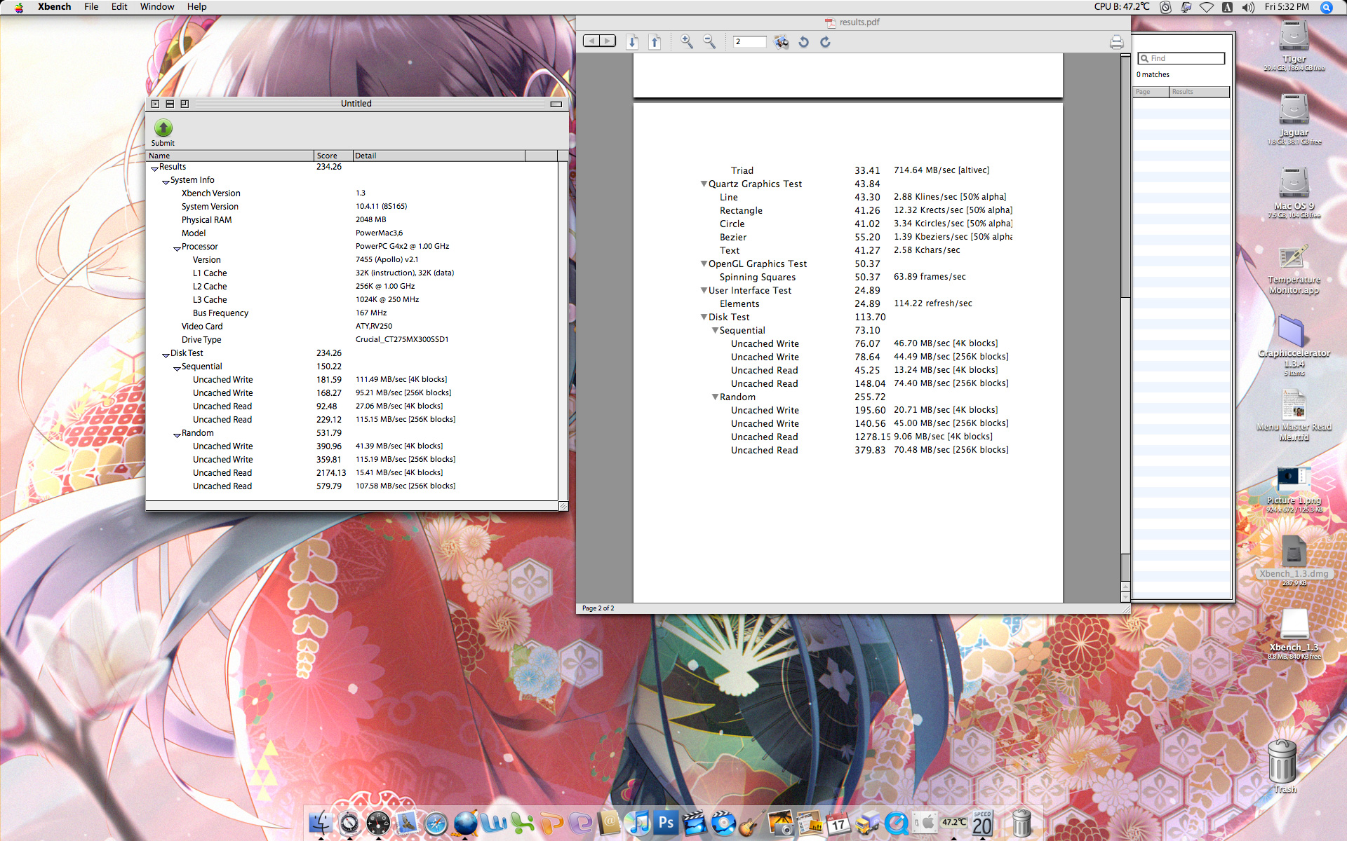 It's running 10.4.11 Tiger, although I do have Jaguar installed. I think it's using the Classic Platinum 2.0 theme.Amazing work! What OS X version and theme you are using for the first screenshot “ssd results” ? It kinda looks like a revamped OS 9 theme. I love the dock - perfect transparency.