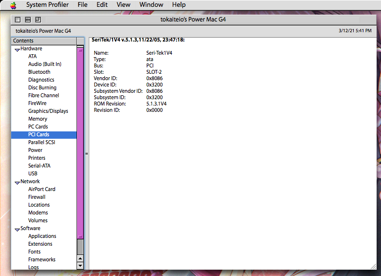 Amazing! Glad you got the PSU working. OS 9 looks beautiful on that display, I really want an official Apple display of some description to use with my G4 Digital Audio.I finally installed the refurbished power supply (with all the capacitors replaced) and the machine is back up and working. I also finally received the Firmtek Serialtek 1v4 PCI-X card, which gives me 4 SATA ports. I don't need 4 SATA ports, but the PCI-X bandwidth makes the PowerMac G4 even faster since it can take advantage of the faster PCI-X speeds. Still, the SSD is still 20% of what it normally be on SATA 3. Still faster than ATA.