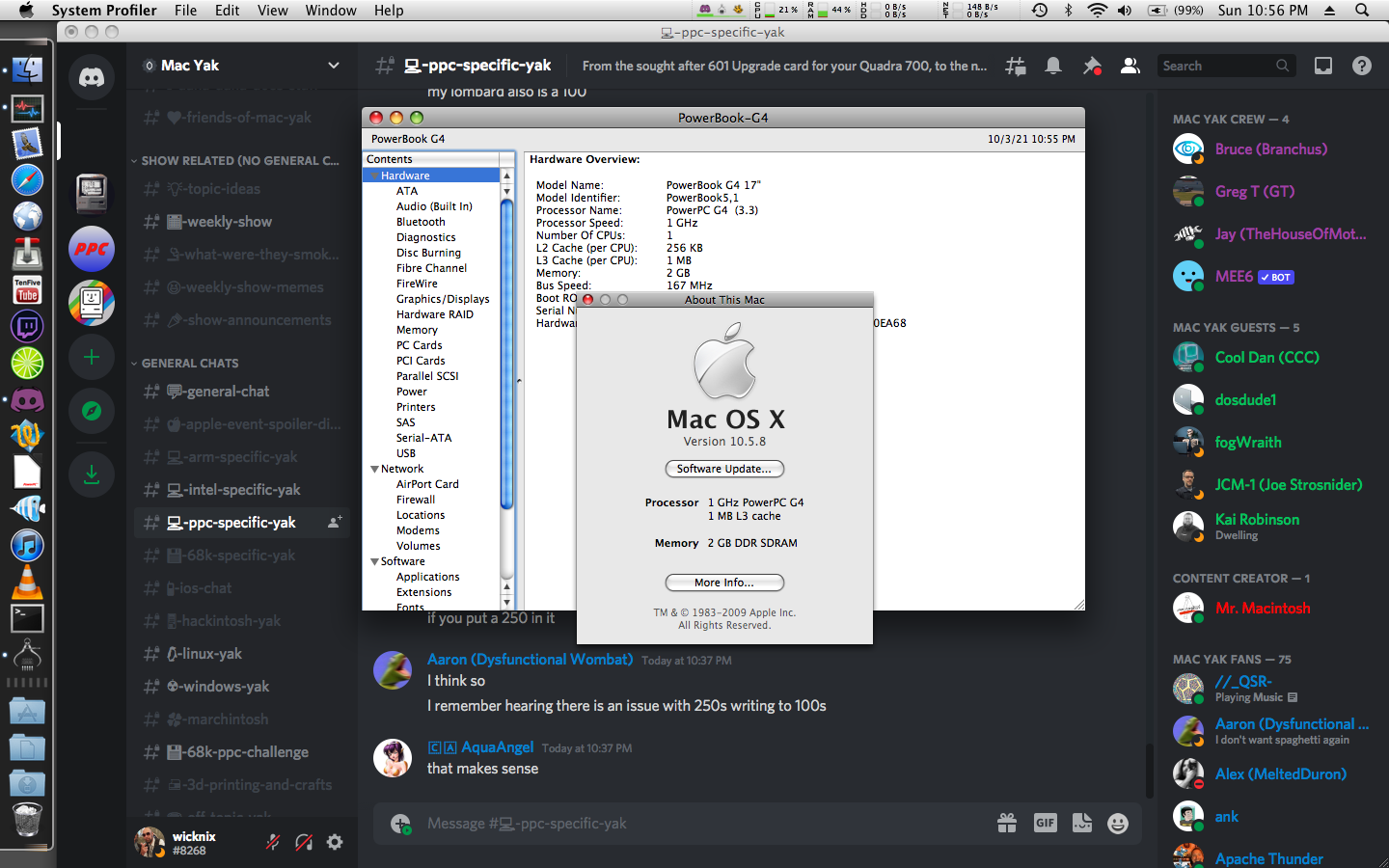 I picked up a 17" powerbook from goodwill for $46 this weekend (no charger included). It's in fair condition. The case is spotless except the front bezel is a little chipped up from the previous owner cracking it open to repair or replace something, and the hinges have about 1/2" play in them. Otherwise the battery still holds a charge and it works as expected. I did a fresh install of Leopard finally. Normally i just restore backups, but this time i wanted to only install software that i actually use on a normal basis. Then ran the .nib removal, language removal, intel code removal, and tweaks. I'm surprised how well Leopard runs on 1ghz.