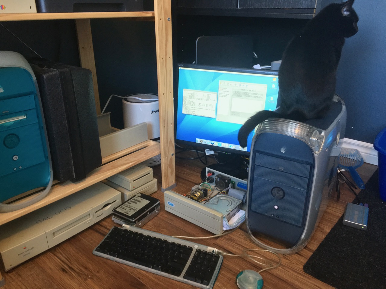 Kitty wants on on the ppc too 🙂After a few minor SATA HDD failures over the past few years, I decided it was a good idea to properly test all my aging IDE and SCSI drives to check for any warning signs given their advanced age.