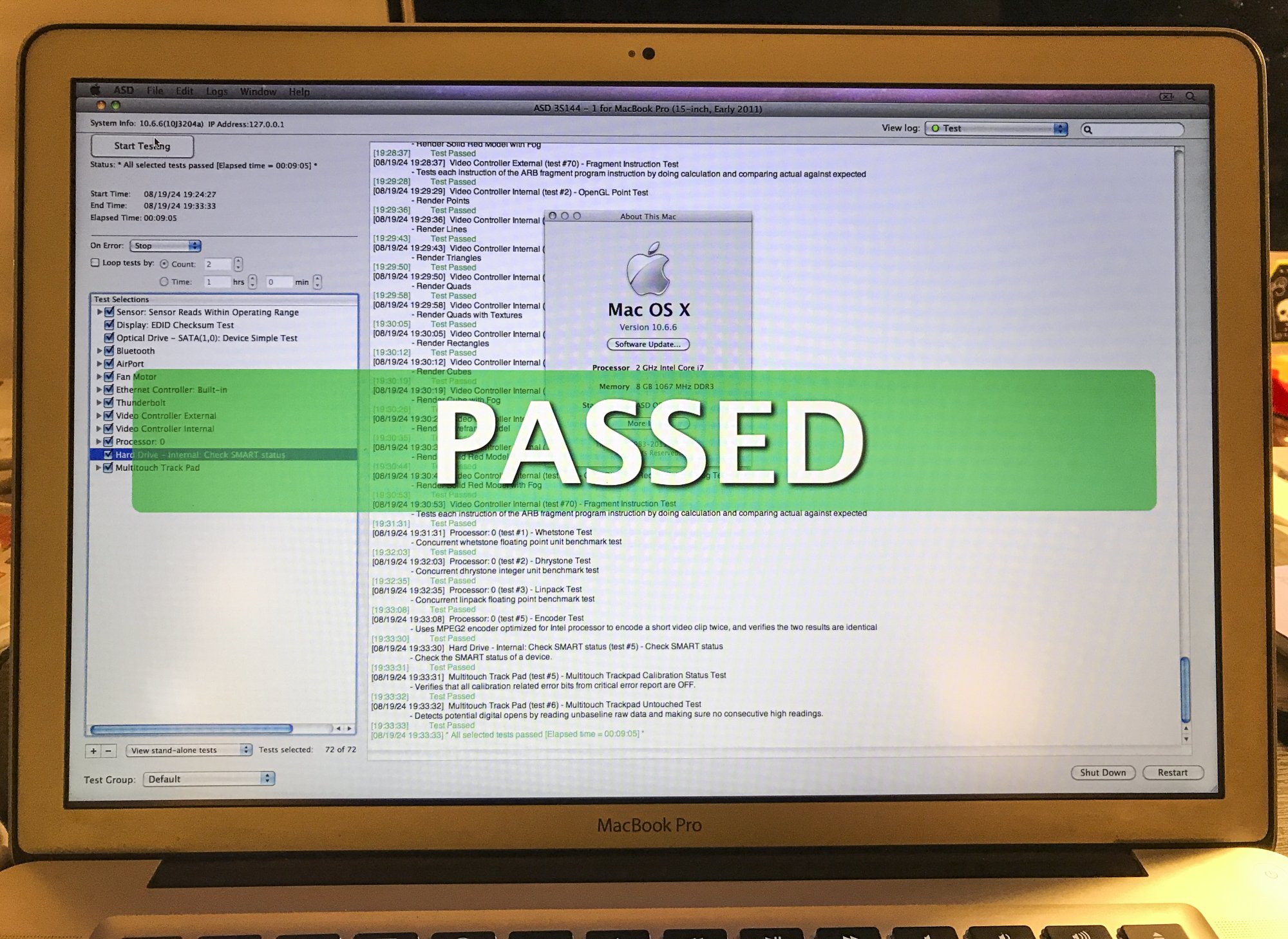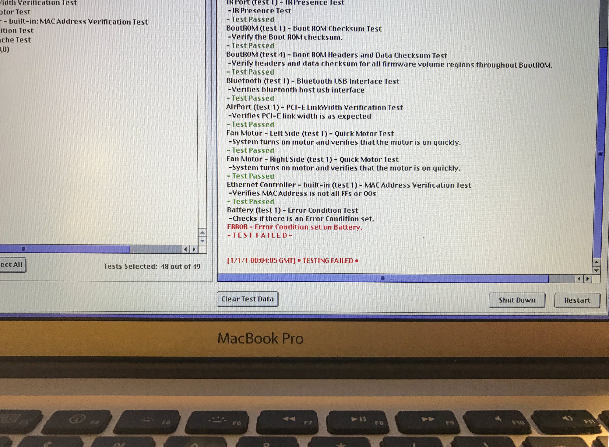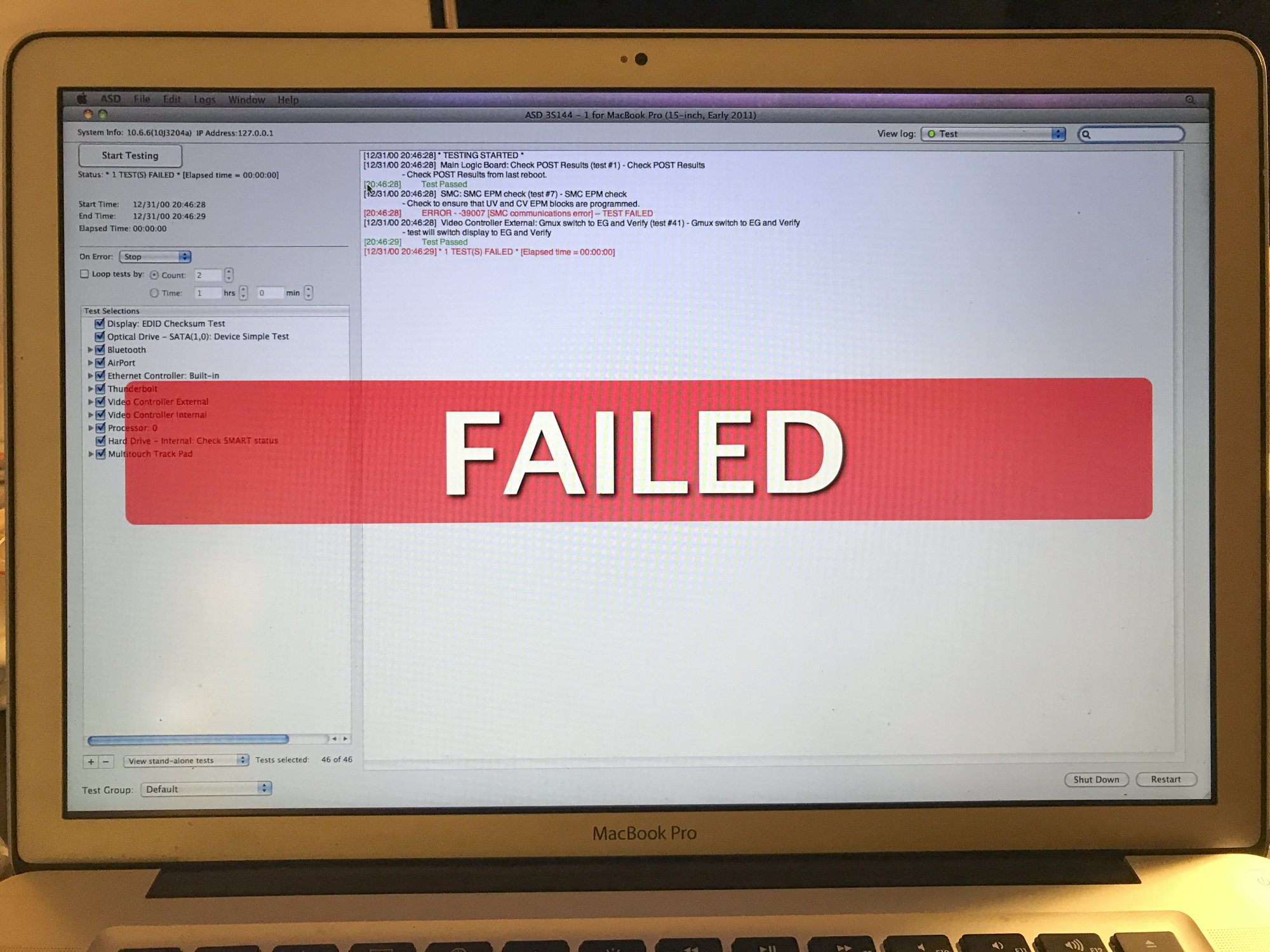 First, I ran ASD — both OS and EFI. With SMC bypass, OS test failed promptly. (There’s something about a giant “failed” on screen which feels awkwardly…