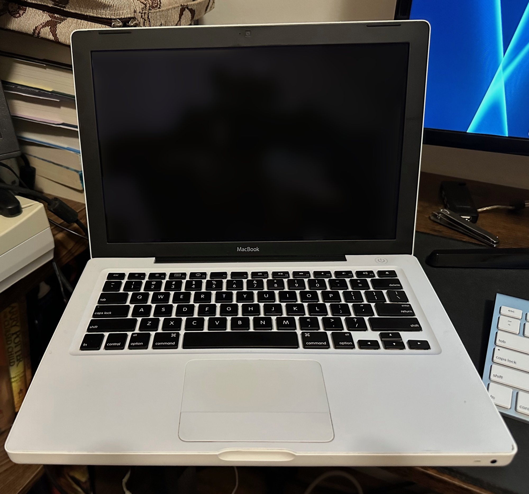 Latest acquisition 2008 white MacBook 4,1: it's a duffer. No display and no video output anywhere else either. More investigating to be done.