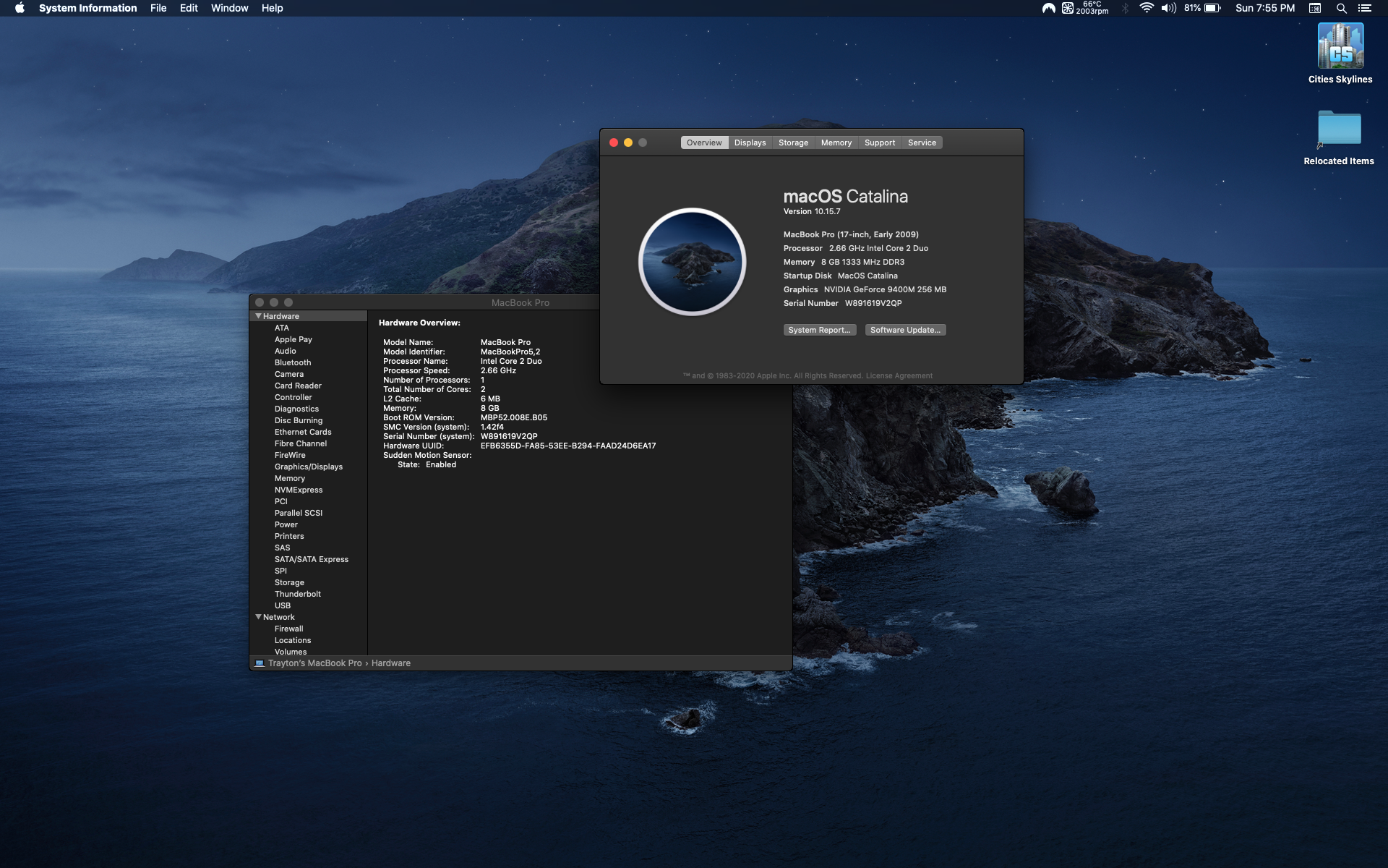 166Srv - 2009 Mac mini (2.0GHz C2D, 8GB RAM, 128GB SSD, dosdude High Sierra). My classroom server. Used for file storage with a few external drives, Time Machine backups for all my other Macs, and running my lab management software because it's ancient and never got a 64-bit update.