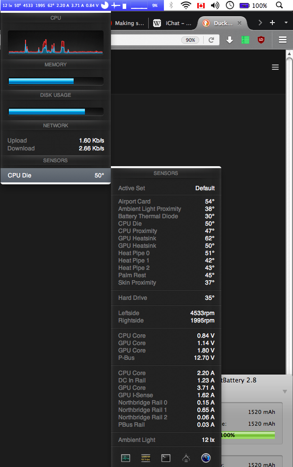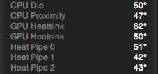 As I add this section via the A1261, I’ve managed to push the Skin Proximity temp up to 42°C under load (Interweb, Transmission, Console, Preview, and a few OS X lightweight utilities like Dictionary and Calculator). Before the thermal pad mod, this would have been closer to 46°C — the latter being above the threshold for risking second-degree burns (after over an hour of constant exposure) or third-degree burns (after over 90 minutes of constant exposure); in localized spots, such as where the cross-members of the heatpipe assembly met the bottom case), that temp was likely much higher). And this might finally explain how I received such deep burns over the summertime as I used this laptop on my bare leg lap.