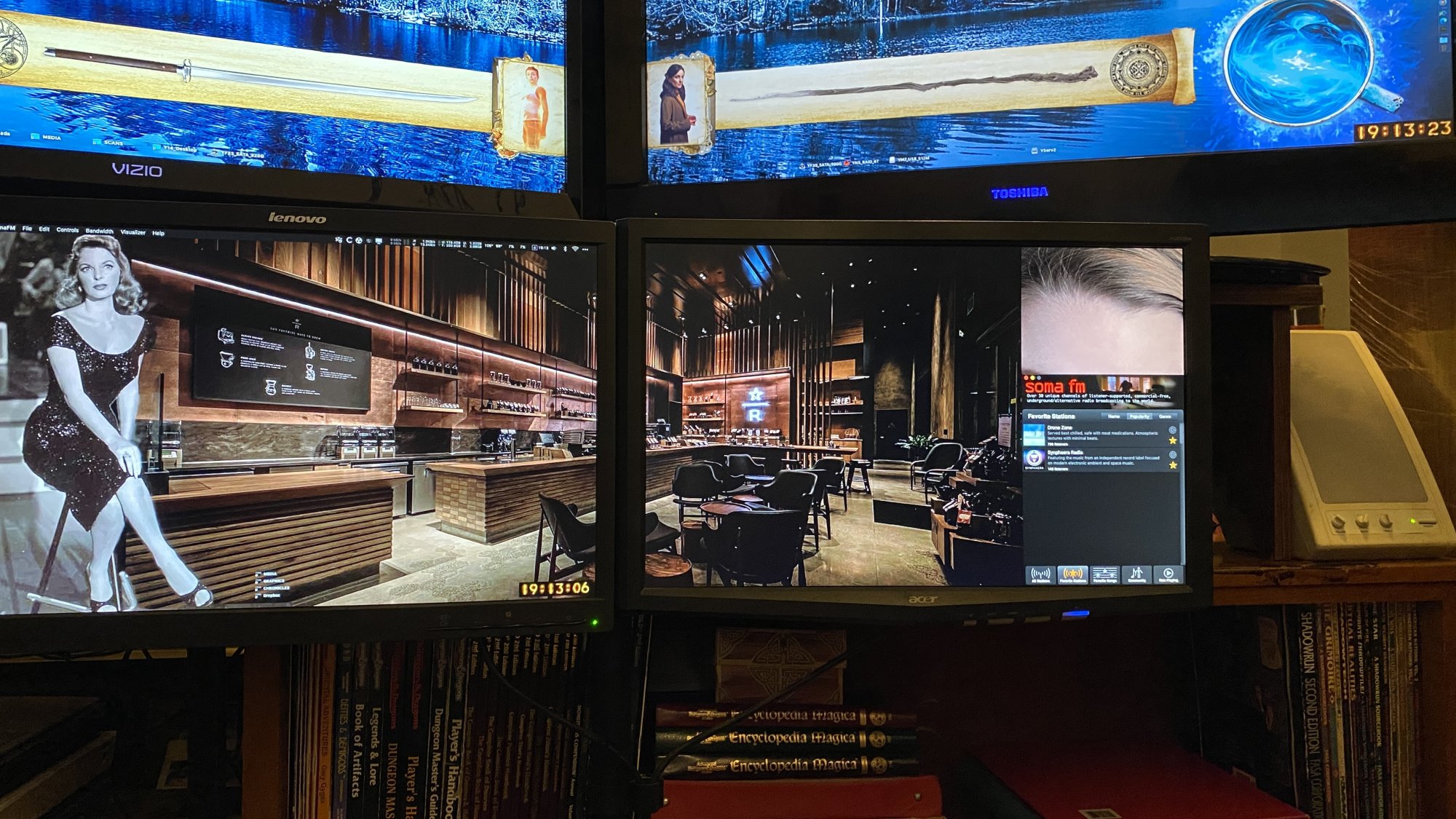 I am trying to achieve a background that inspires me for writing whenever I am at this computer. This Mac Mini is in the garage and I am surrounded by my fantasy gaming books and sci/fi fantasy novels. It's supposed to be more of a 'happy' environment for creation. I refer to this desktop/Mac as my 'Creativity Desktop'.