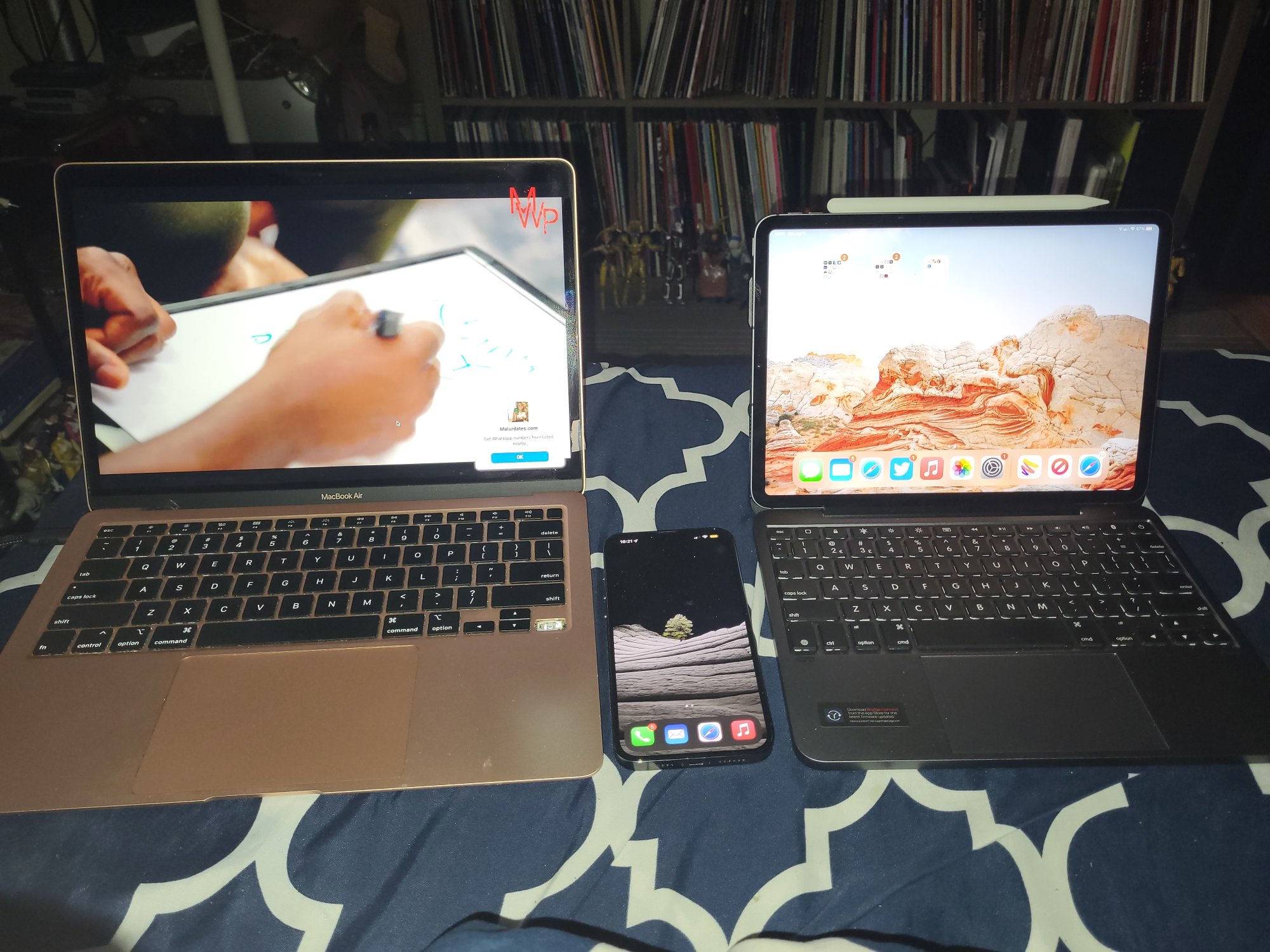 An update on my current set up.Using the 2021 12.9” iPP with no case (looking to get a DBrand skin eventually). I normally use a Folio type case, but I created a Magic Keyboard-like dock for when I’m at the desk. But when I undock it from my stand… I use this portable stand.