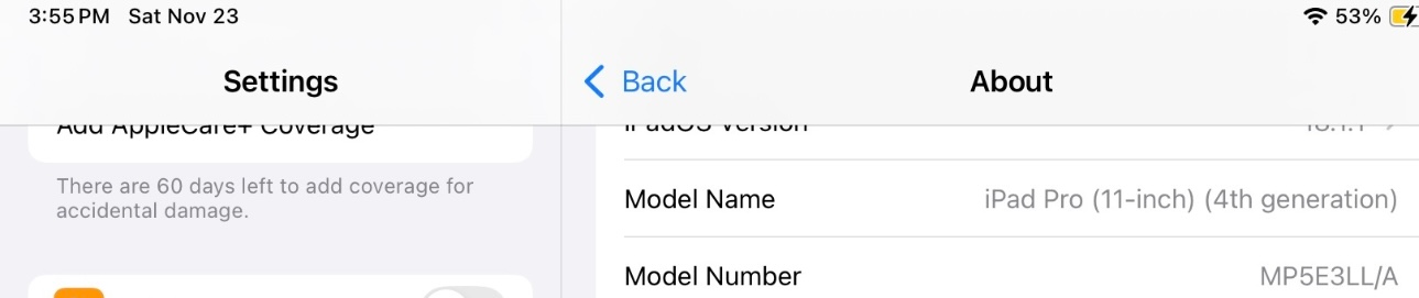 But when I go on Wikipedia and look up iPad Pro 4th Generation, I get this, which doesn't correspond to my iPad.