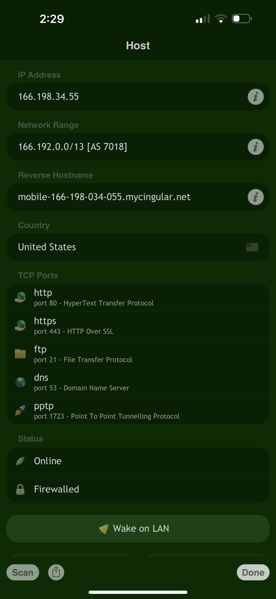 The other question is why are the ports open for FTP, PTP Tunneling, and RTSP, from my cell phone if I’m not trying to access any camera or what not via RTSP? Everything I have read about port 1723 is that it’s used specifically for Microsoft Point to Point Tunneling and it has known vulnerabilities. if I’m not using a PC, and I do not own a Microsoft account on any device I own!! And why are these ports open on my IPhone using cellular without a VPN and all apps closed and background refresh off entirely. And all settings on all my apps that have location services are set to “while using the app”