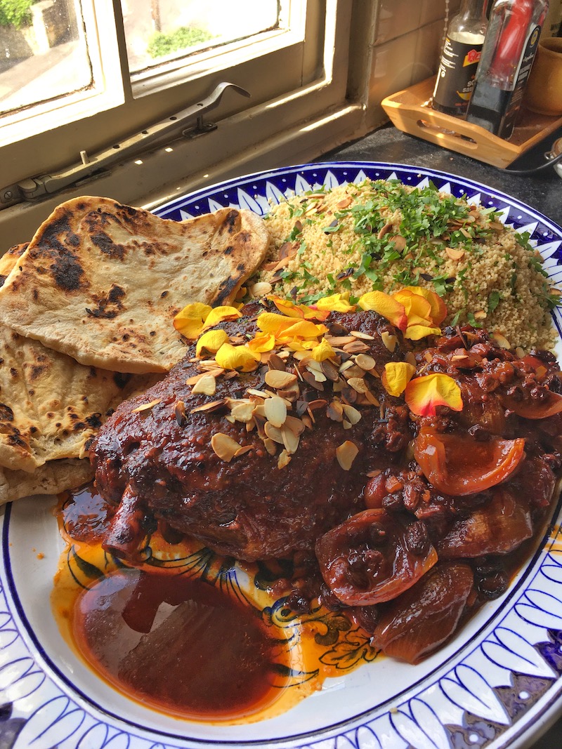 Slow roasted around 6 hours. Rubbed with a spice paste of Fresh Ginger, Garlic, Lemon and Orange zest, Honey, Cinnamon, Cumin, Coriander, Fennel, Ginger, Pepper, Turmeric, Cardamom and Saffron…